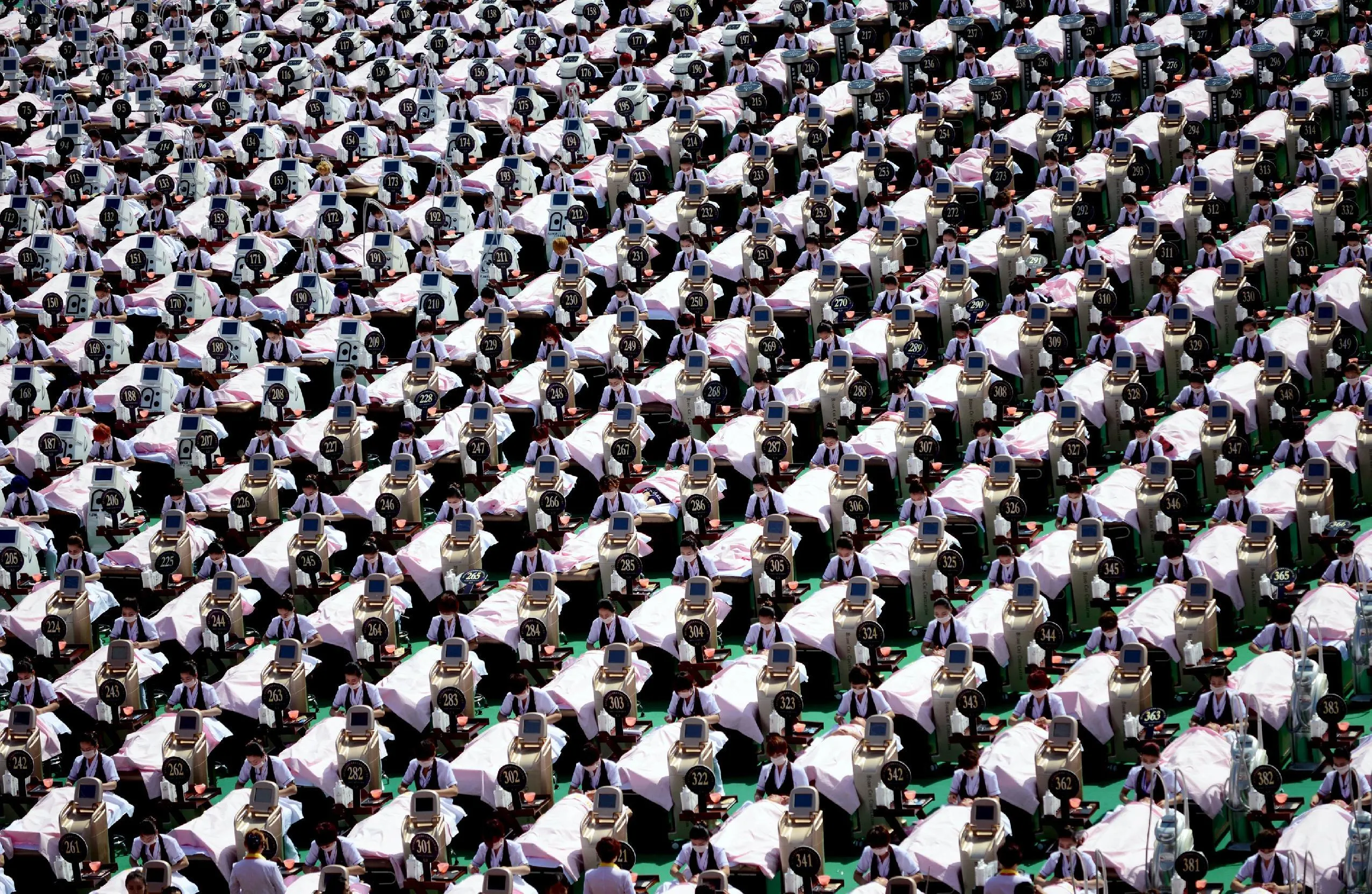 A group of 1000 customers receive a facial massage at a sports centre in Jinan, Shandong province, China, May 4, 2015. (Photo by Reuters/Stringer)