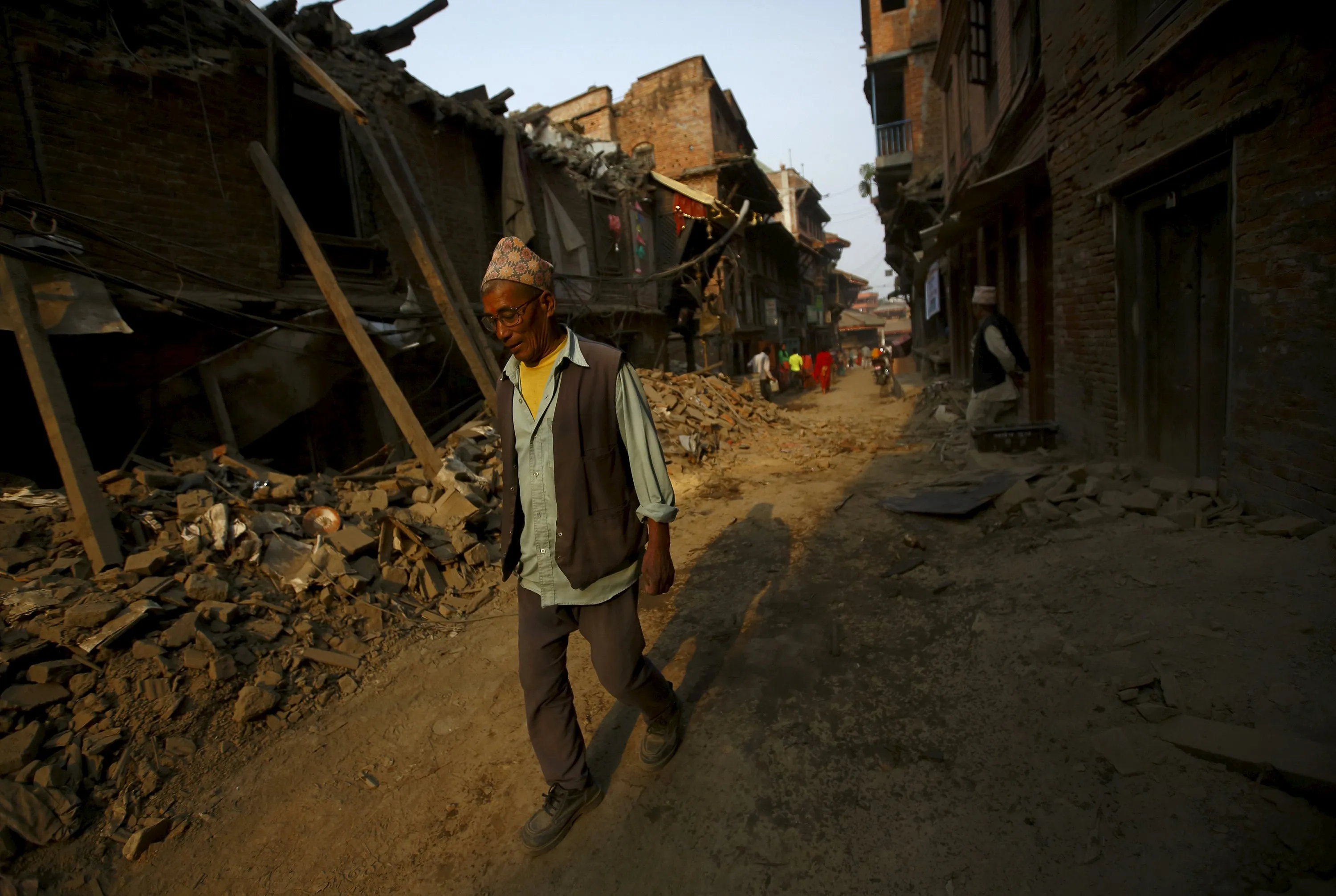 A man walks past collapsed houses after the April 25 earthquake at Bhaktapur May 7, 2015. (Photo by Navesh Chitrakar/Reuters)