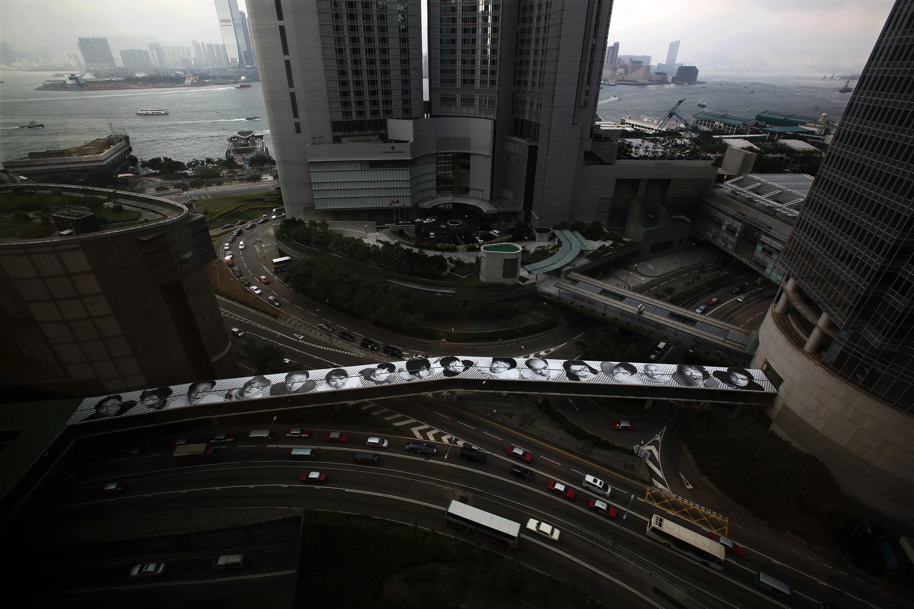 A display part of the “Inside Out” project is seen on the roof of a foot bridge at Hong Kong's Financial Central District September 21, 2012. (Photo by Bobby Yip/Reuters)