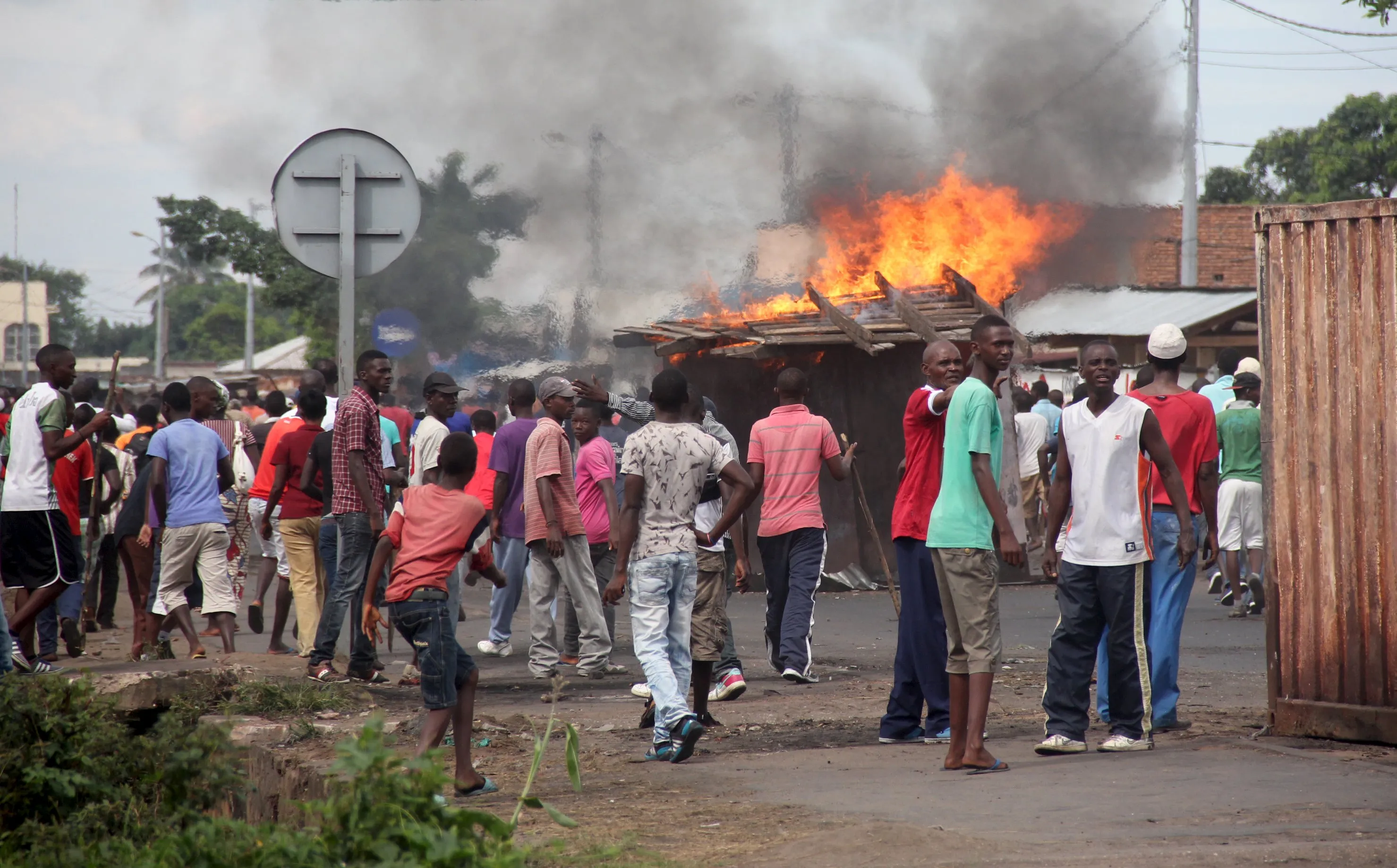 Protesters erect a barricade as they demonstrate against the ruling CNDD-FDD party's decision to allow Burundian President Pierre Nkurunziza to run for a third five-year term in office, in Bujumbura, May 7, 2015. (Photo by Jean Pierre Aime Harerimana/Reuters)