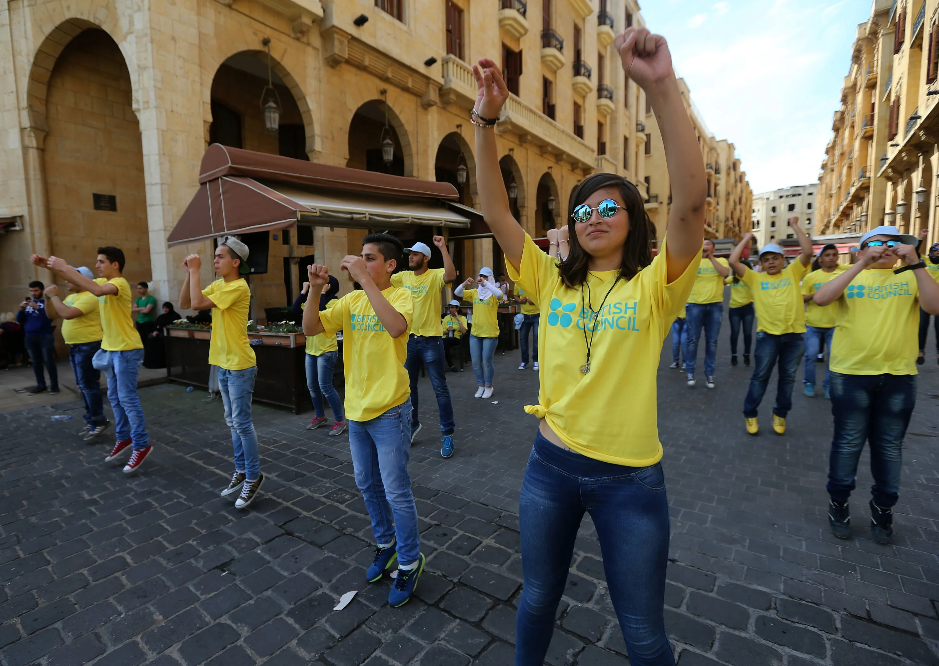Lebanese students dance during the event The Big Dance “Beats for Peace”, at the Parliament square, in downtown Beirut, Lebanon, Saturday, May 9, 2015. (Photo by Hussein Malla/AP Photo)
