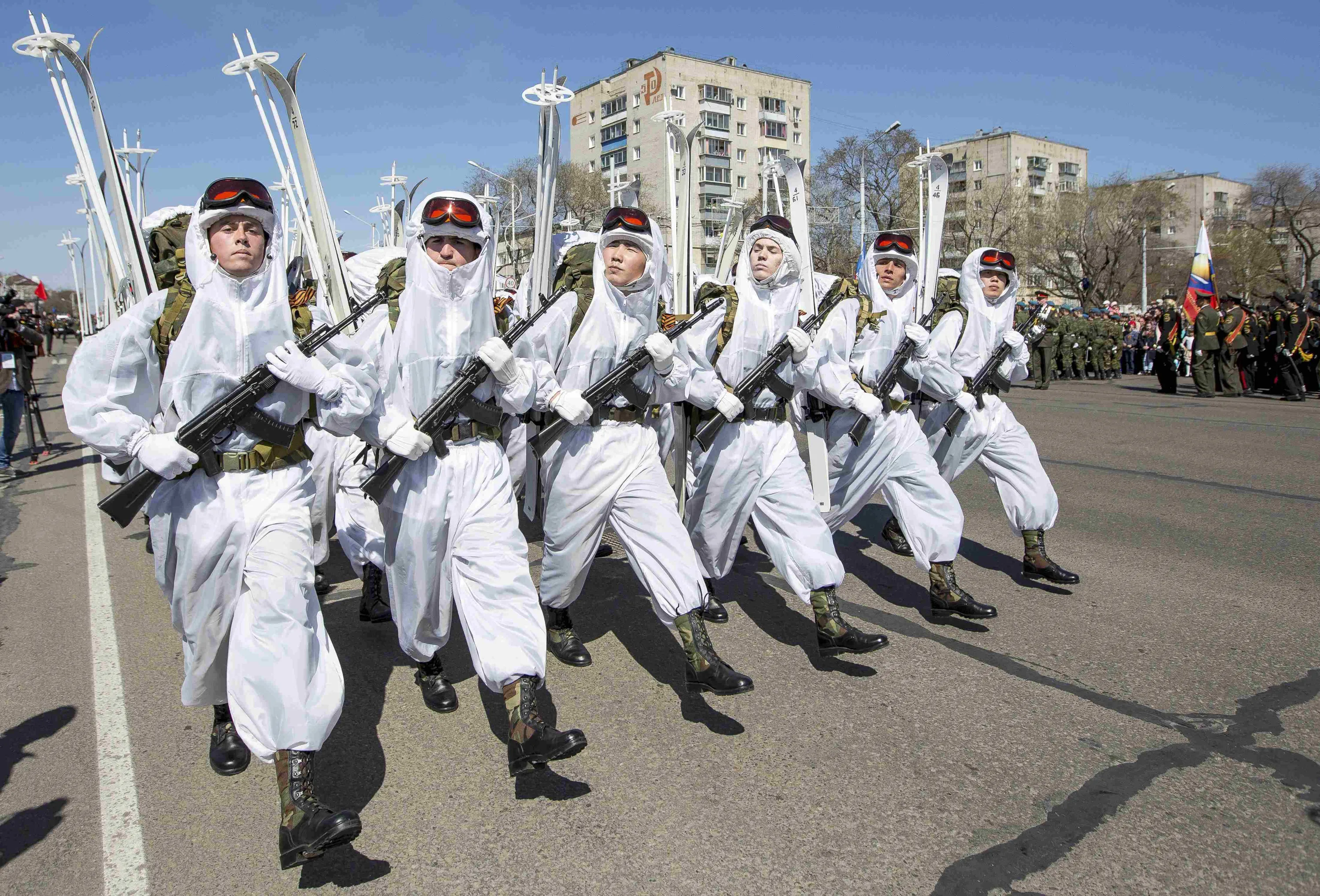 Soldiers march during the Victory Day celebrations in Blagoveschensk, Russia, May 9, 2015. (Photo by Reuters/Host Photo Agency/RIA Novosti)