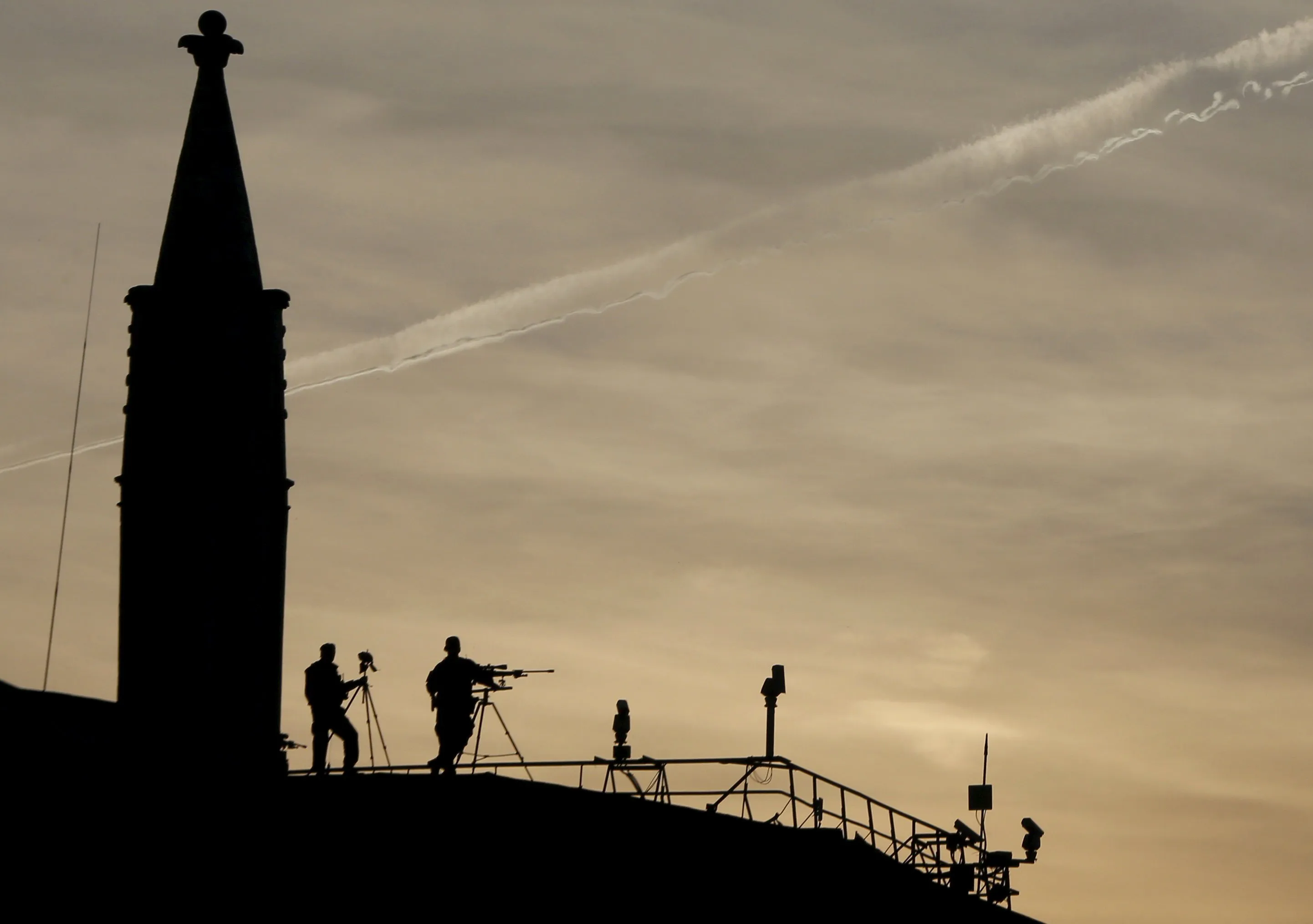 Snipers take up a position before a festive concert marking the 70th anniversary of the end of World War Two in Europe, at Red Square in Moscow, Russia, May 9, 2015. (Photo by Maxim Shemetov/Reuters)