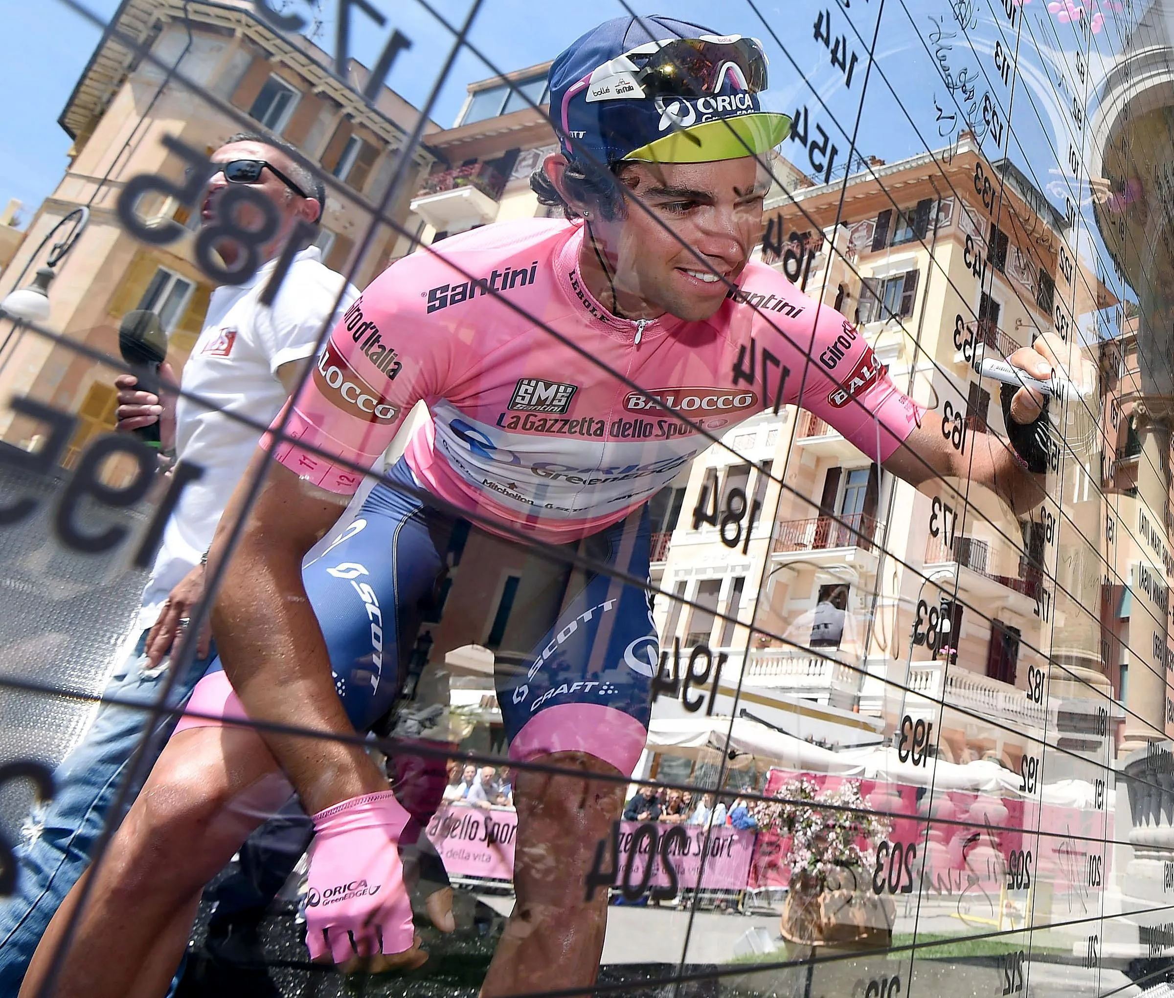 Overall leader Michael Matthews signs the starting list prior to the start the third stage of the Giro d'Italia, Tour of Italy cycling race, from Rapallo to Sestri Levante, Italy, Monday, May 11, 2015. (Photo by Daniel Dal Zennaro/ANSA via AP Photo)
