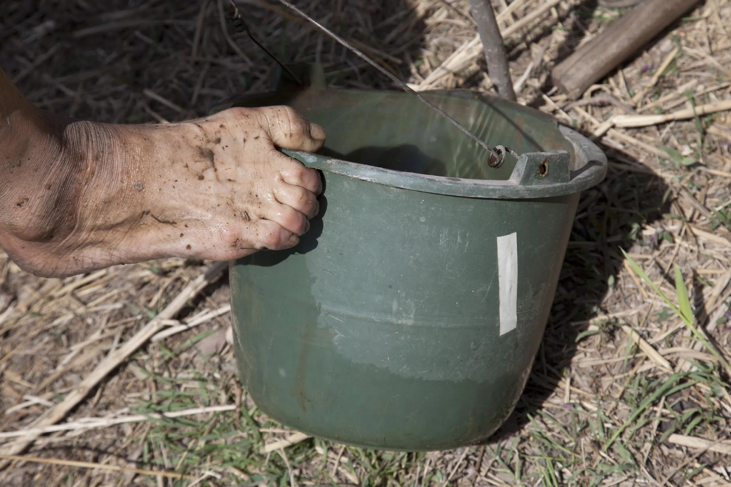 In this April 23, 2015 photo, Jia Wenqi uses his foot to pour a bucket of water in Yeli village near Shijiazhuang city in northern China's Hebei province. (Photo by Helene Franchineau/AP Photo)