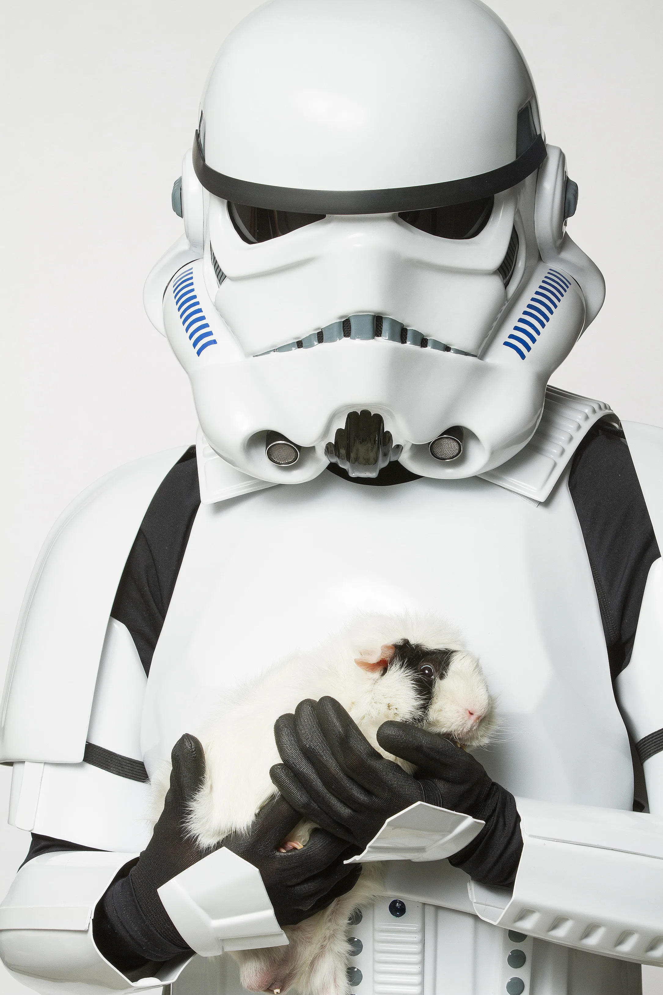 A Storm Trooper with a guinea pig. (Photo by Rohit Saxena/Caters News)