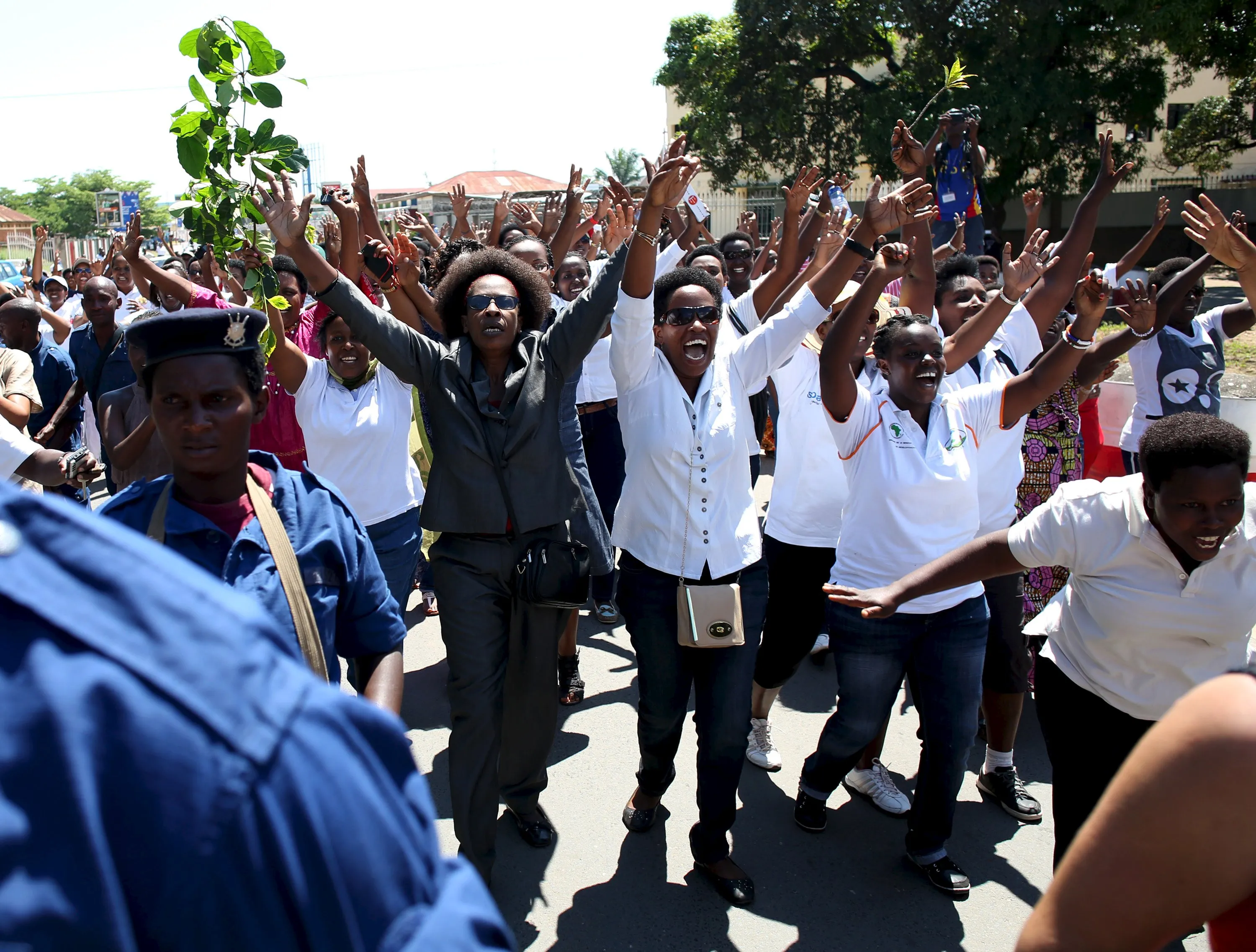 Woman march during a protest by women against president Pierre Nkurunziza in Bujumbura, Burundi, May 10, 2015. (Photo by Goran Tomasevic/Reuters)