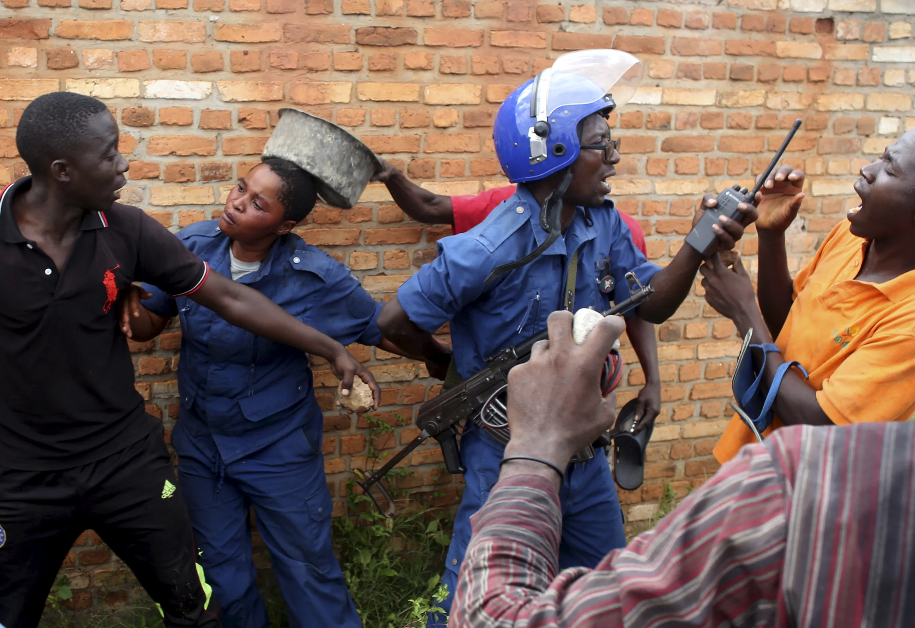 A mob attacks a female police officer accused of shooting a protester in the Buterere neighborhood of Bujumbura, Burundi, May 12, 2015. (Photo by Goran Tomasevic/Reuters)