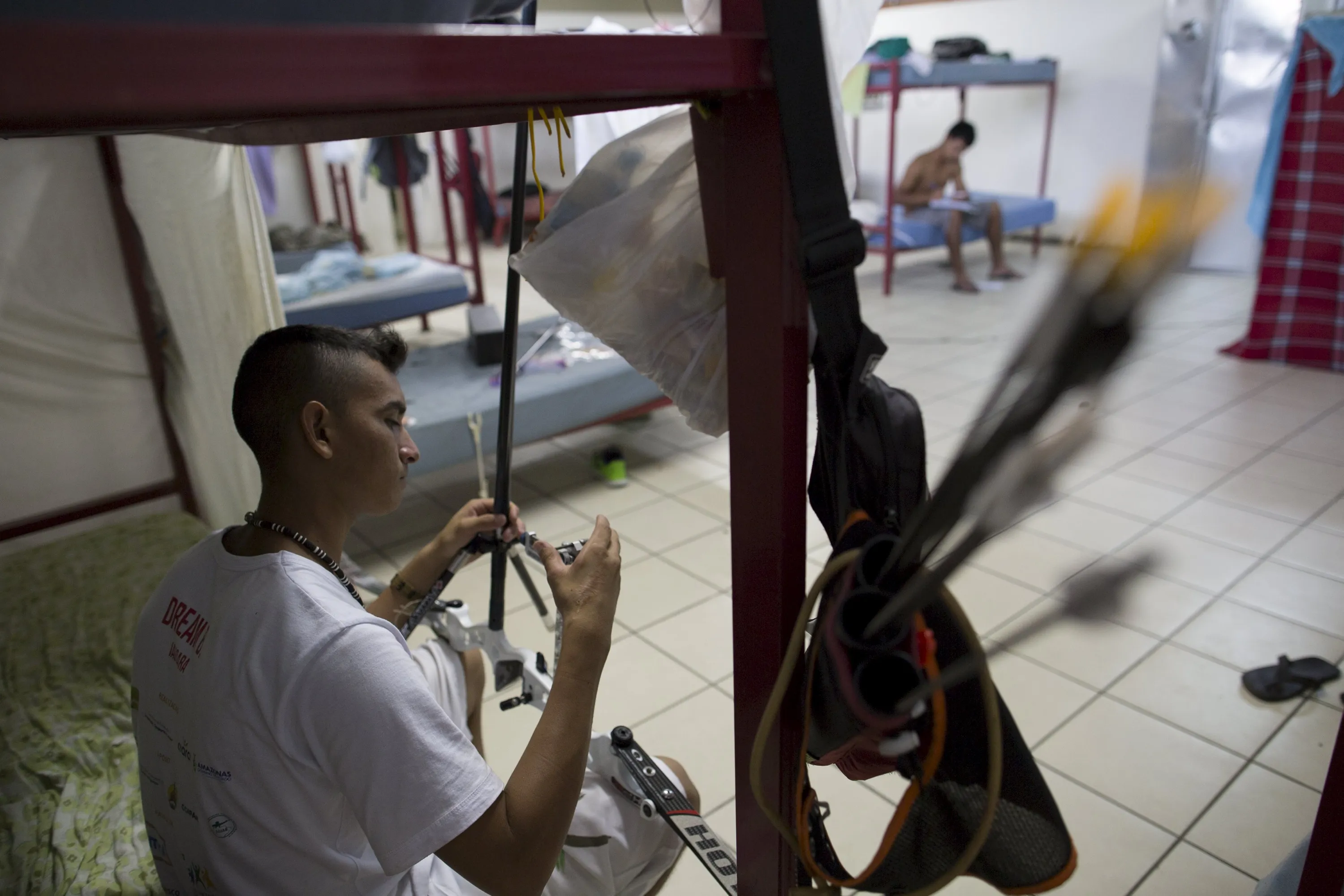 Kambeba Indian, Dream Braga, 18, is seen at the dormitory of a training centre in Manaus, Amazon state May 7, 2015. (Photo by Bruno Kelly/Reuters)