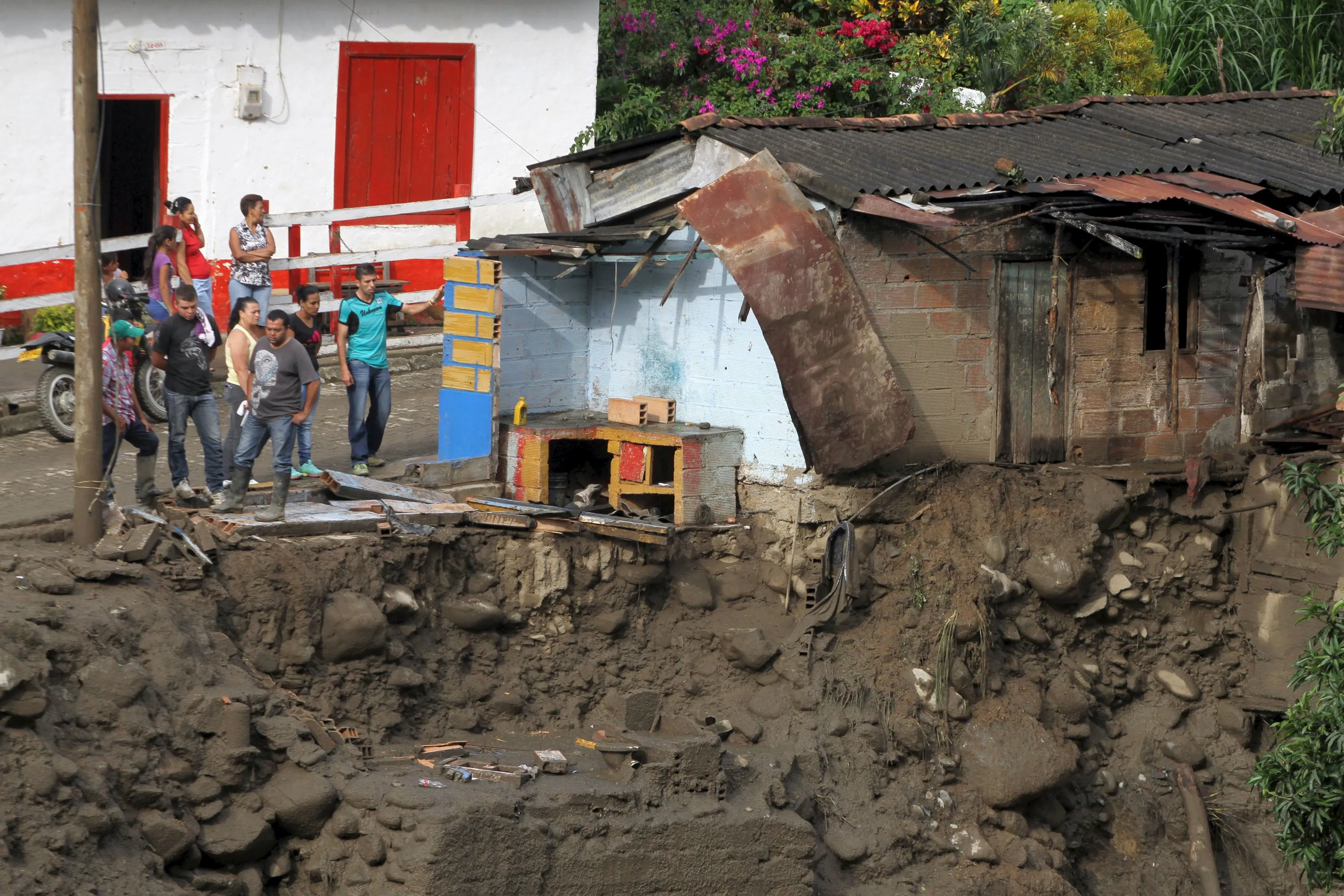 Residents stand in front of a destroyed home in the municipality of Salgar, in Antioquia department May 19, 2015. (Photo by Fredy Builes/Reuters)