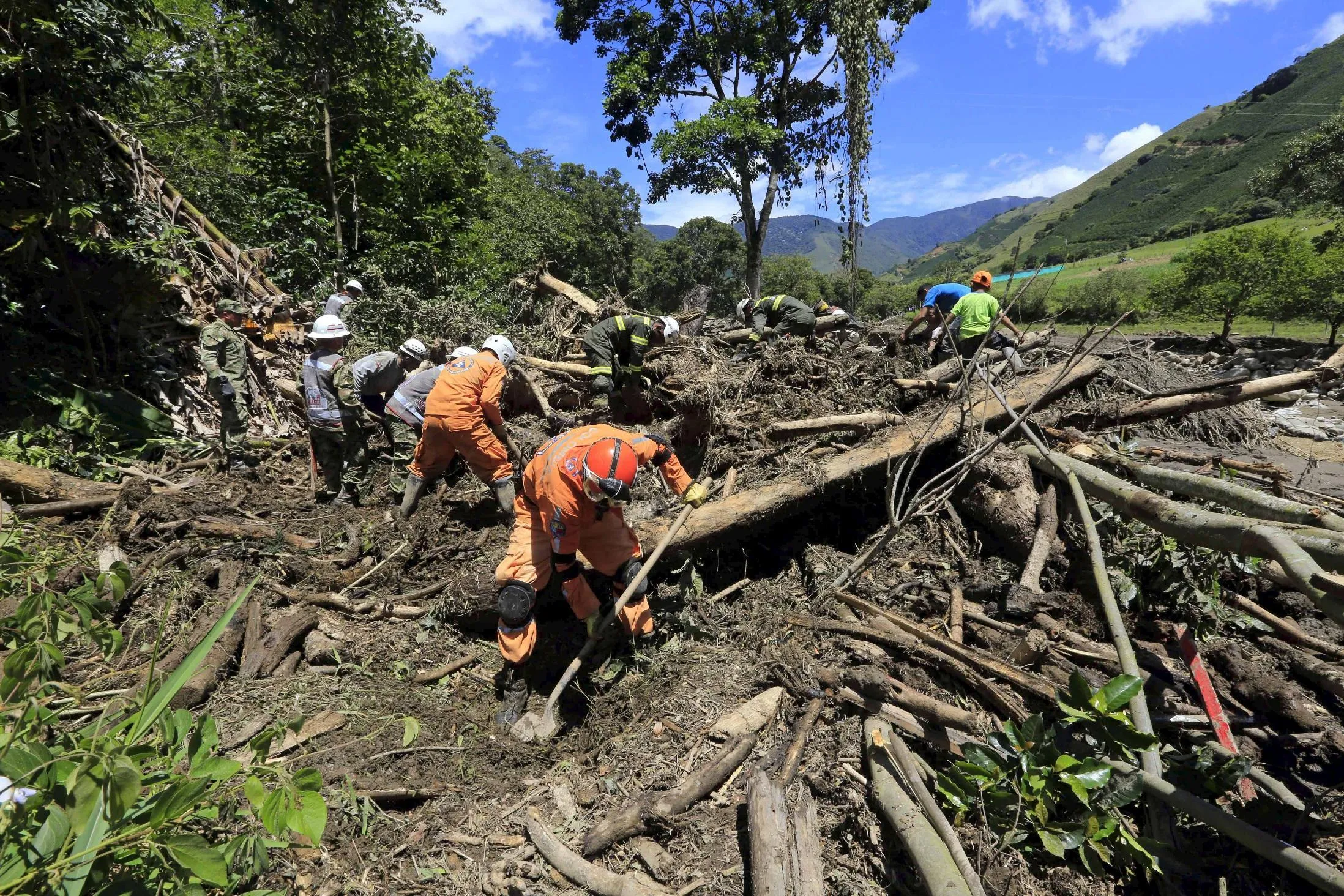 Rescue workers search for the bodies of victims in a landslide that sent mud and water crashing onto homes close to the municipality of Salgar in Antioquia department, Colombia May 19, 2015. (Photo by Jose Miguel Gomez/Reuters)