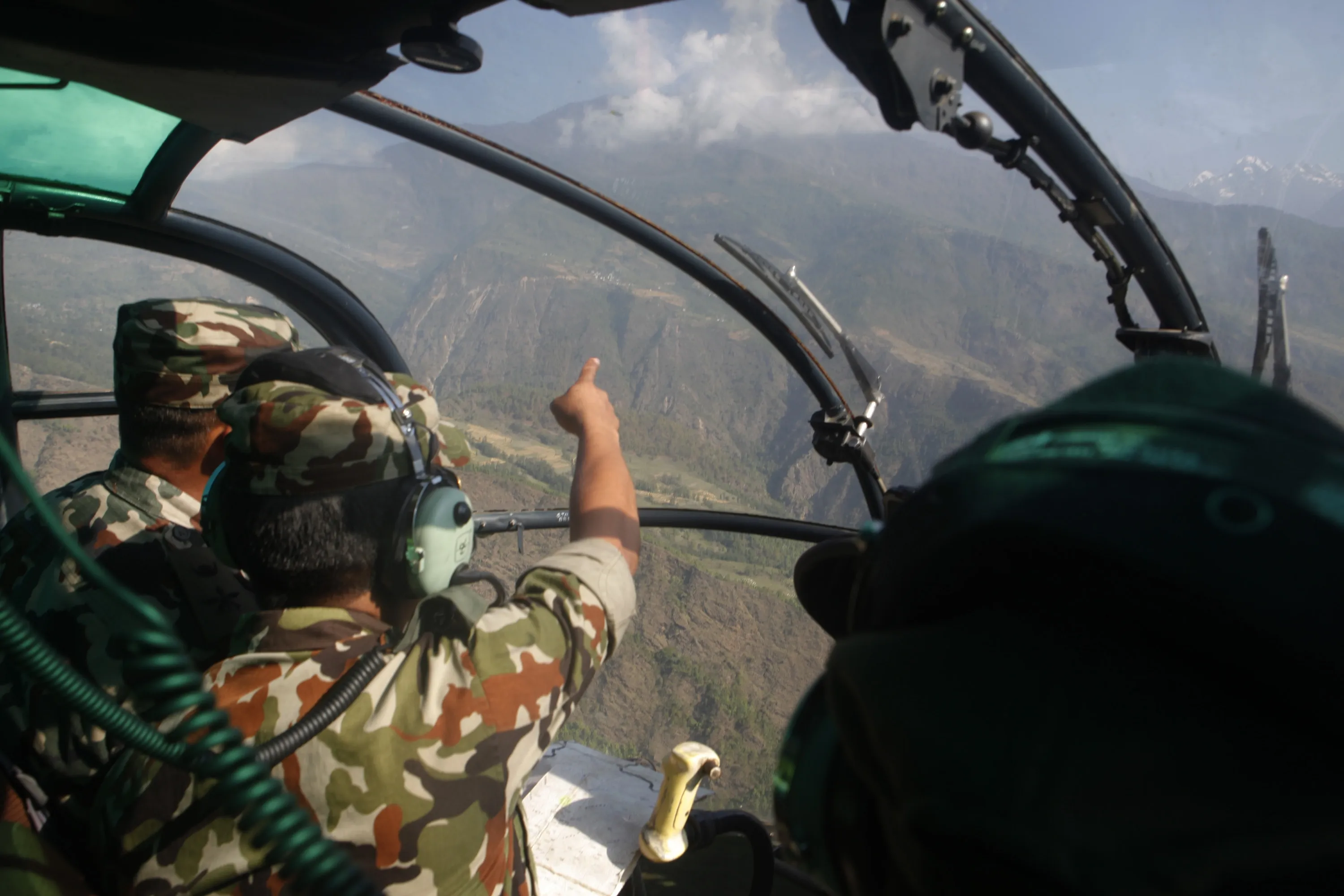 Nepalese army men search for the missing U.S. Marine helicopter in the earthquake affected Dolakha District, Nepal, Thursday, May 14, 2015. The helicopter carrying six Marines and two Nepalese soldiers disappeared Tuesday while delivering aid in the country's northeast, U.S. officials said. (Photo by Niranjan Shrestha/AP Photo)