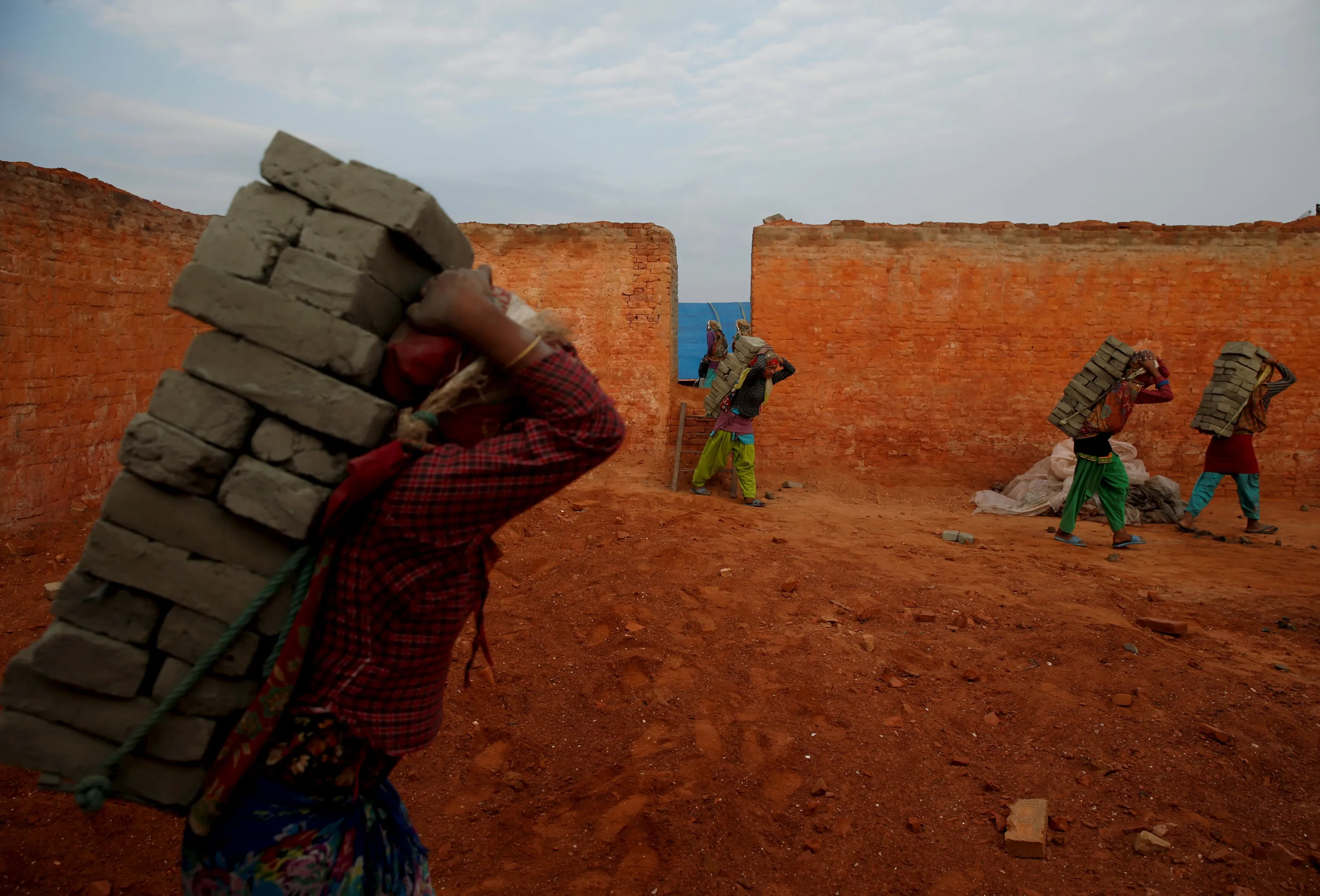 Women carry bricks on their back as they work at a brick factory in Bhaktapur, Nepal, May 17, 2015. (Photo by Ahmad Masood/Reuters)
