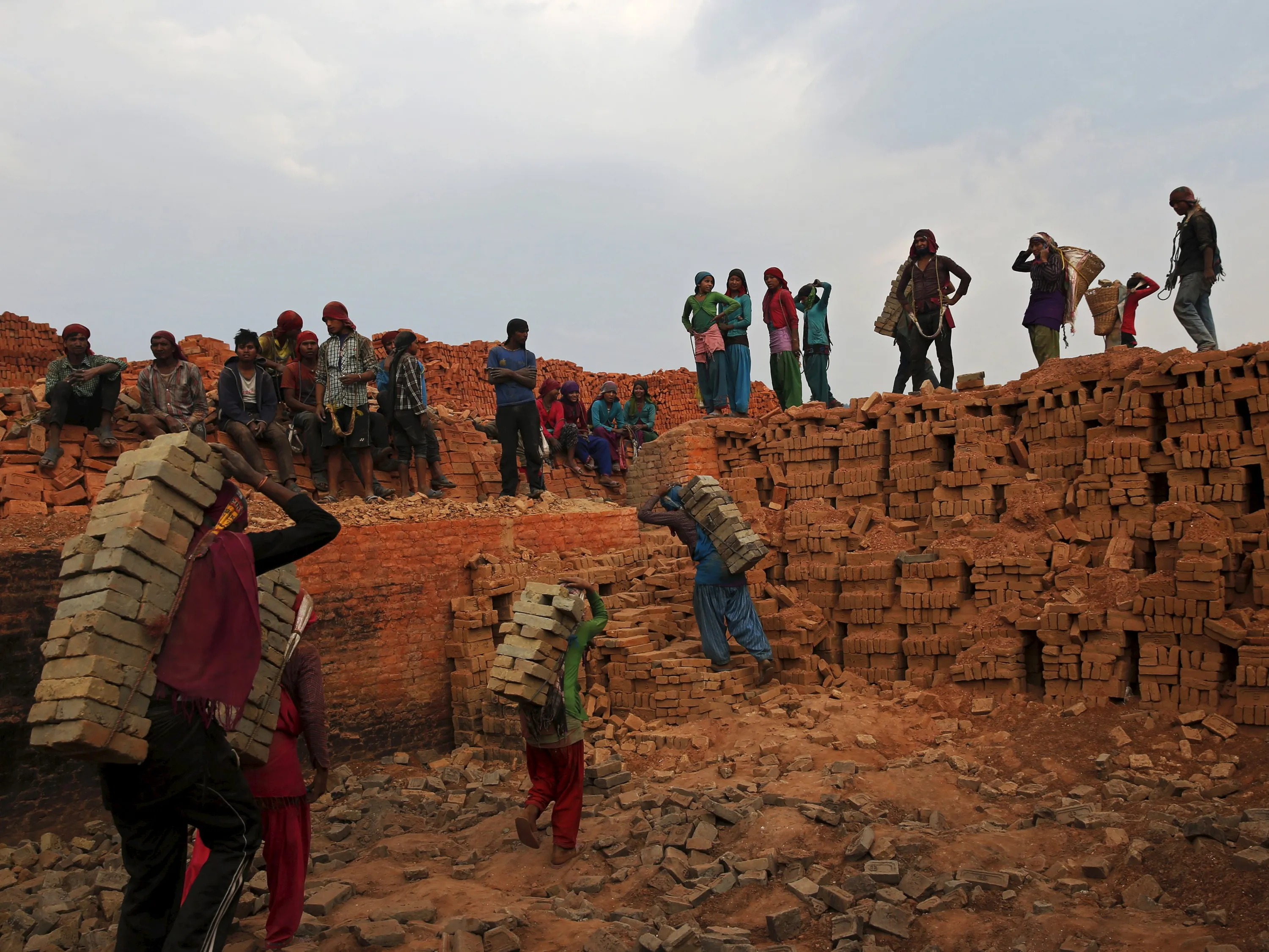 Men and women work at a brick factory in Bhaktapur, Nepal, May 17, 2015. (Photo by Ahmad Masood/Reuters)