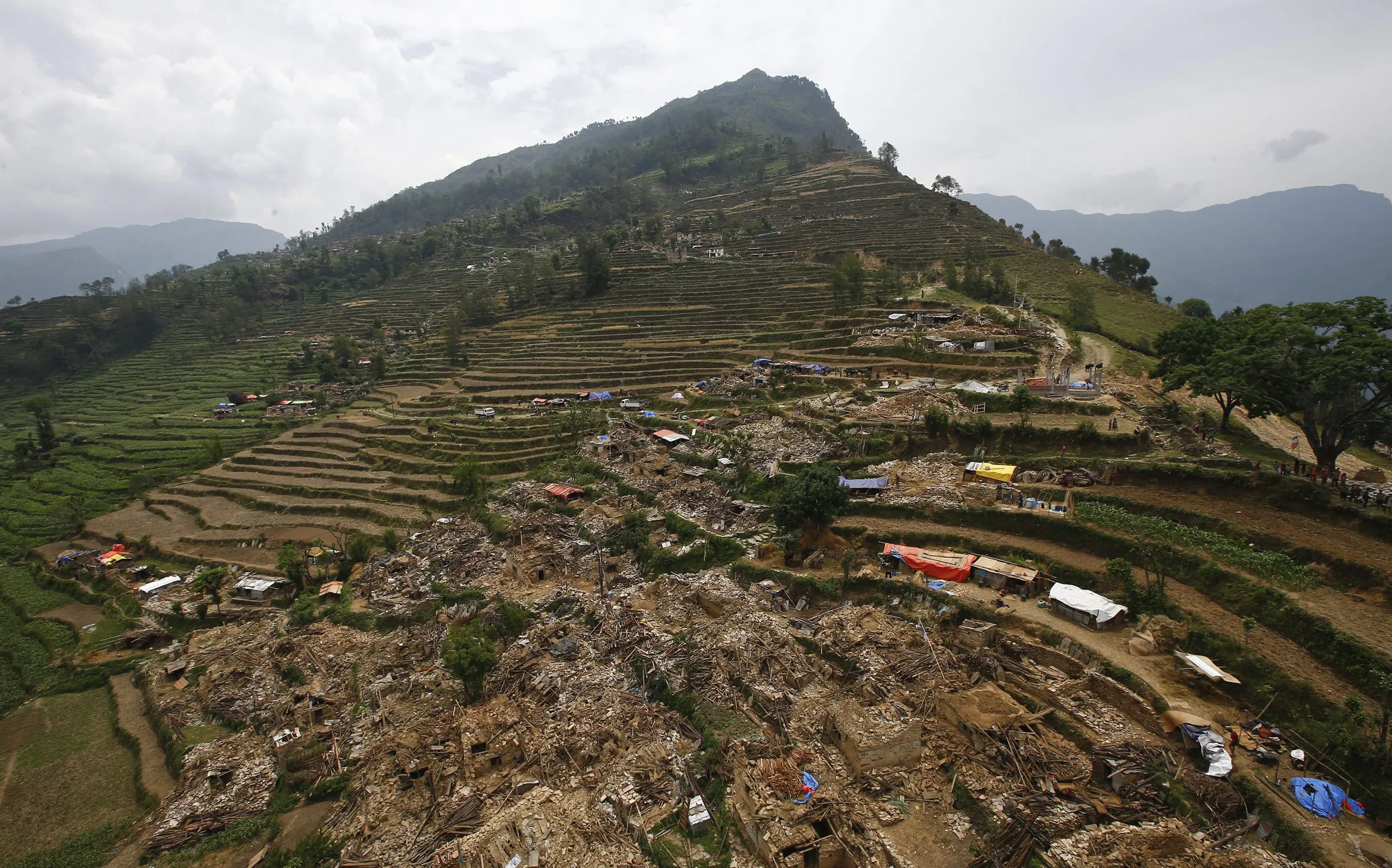 An aerial view of Hagam village in Sindhupalchwok district after another powerful earthquake struck Nepal, 15 May 2015. The death toll from the 12 May earthquake rose to 117, authorities said, separate from the 8,202 victims claimed by the April 25 earthquake. Affected children were 'facing an unprecedented emotional toll' from the double trauma of two natural disasters in a short period of time, the United Nations warned. (Photo by Narendra Shrestha/EPA)