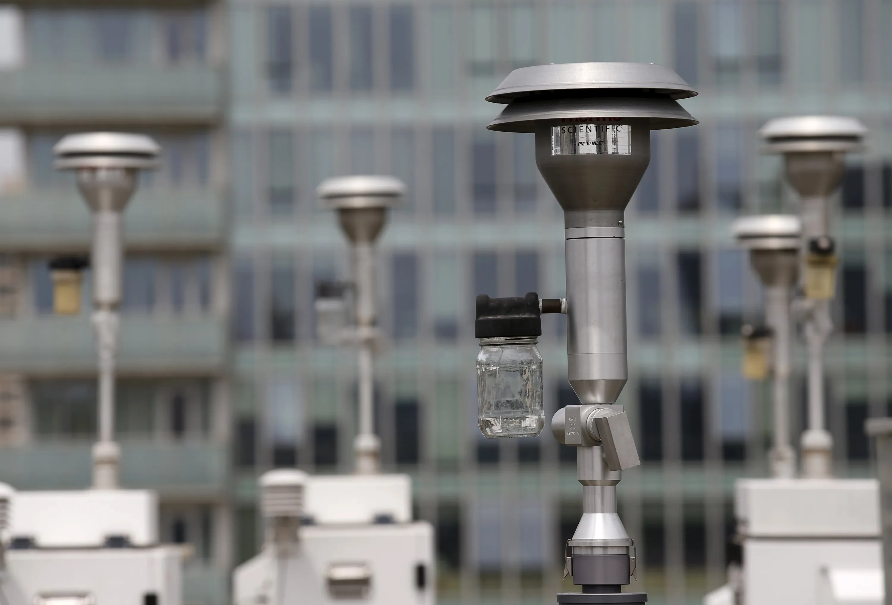 Device collecting samples of Beijing's air are installed on the rooftop of the air quality forecast and warning center in Beijing, China, May 21, 2015. (Photo by Kim Kyung-Hoon/Reuters)