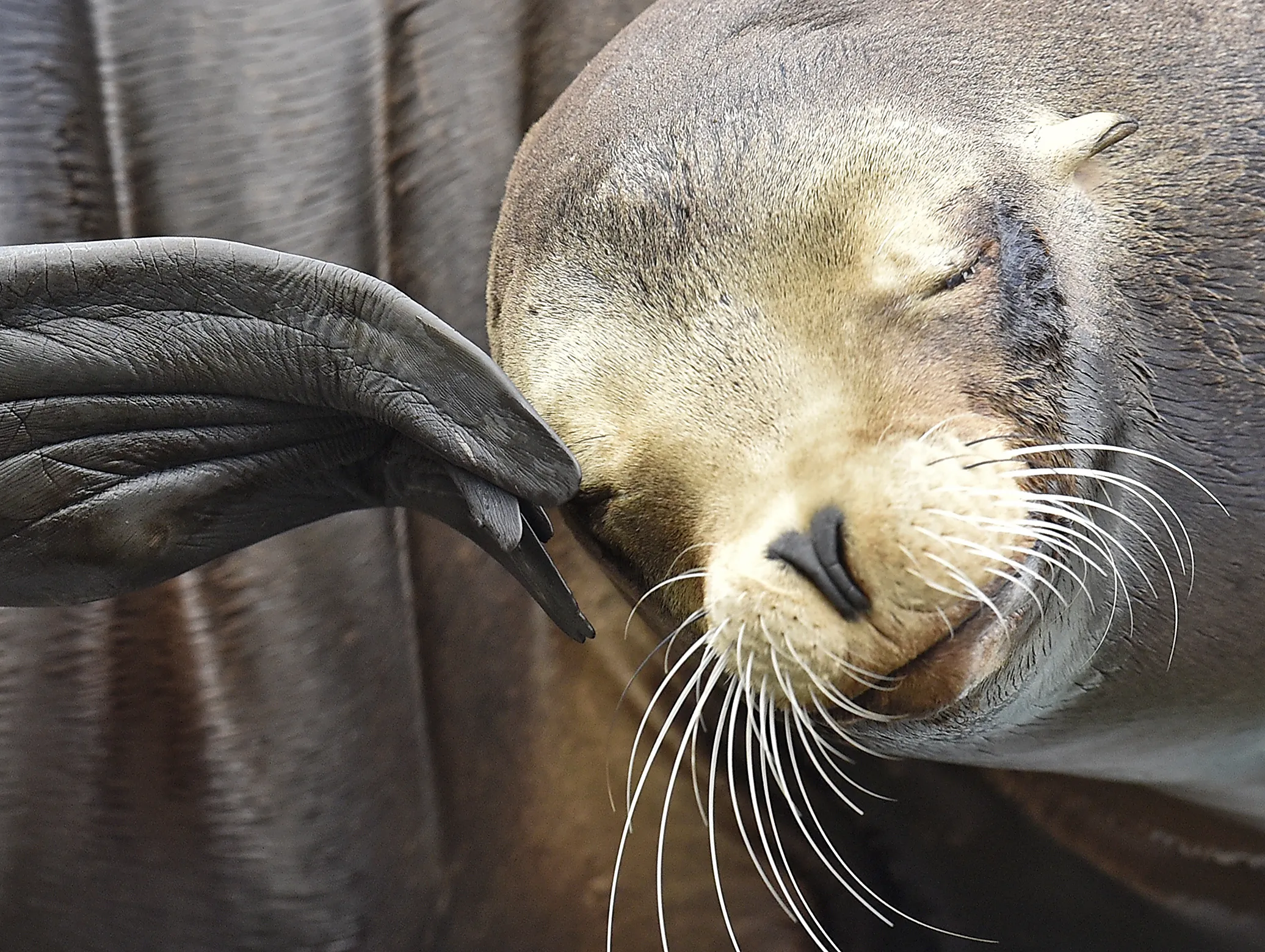 A seal scratches its eye at the zoo in Gelsenkirchen, Germany, on a spring Wednesday, May 20, 2015. (Photo by Martin Meissner/AP Photo)