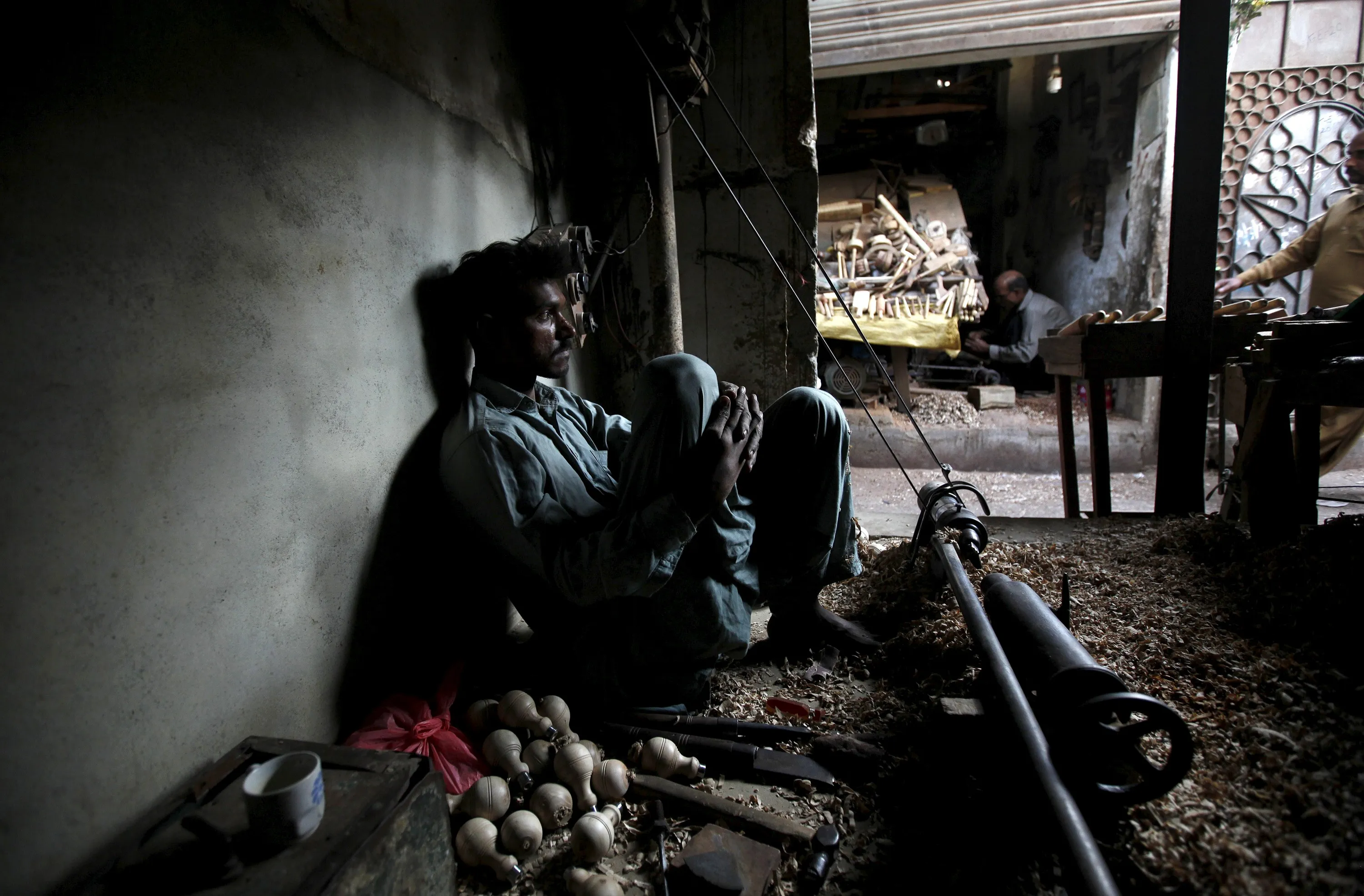 A carpenter at a workshop pauses during a power outage in Karachi April 9, 2015. (Photo by Akhtar Soomro/Reuters)
