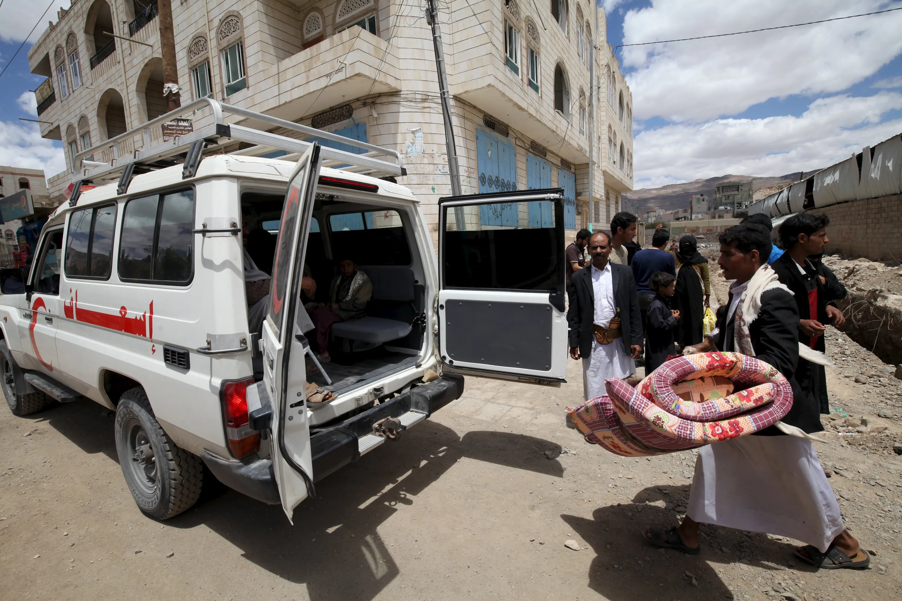 A Yemen Red Crescent vehicle takes displaced people to a another safe shelter after they lived for a few days in an underground water tunnel, after they were forced to flee their homes due to ongoing air-strikes carried out by the Saudi-led coalition in Sanaa May 2, 2015. (Photo by Mohamed al-Sayaghi/Reuters)