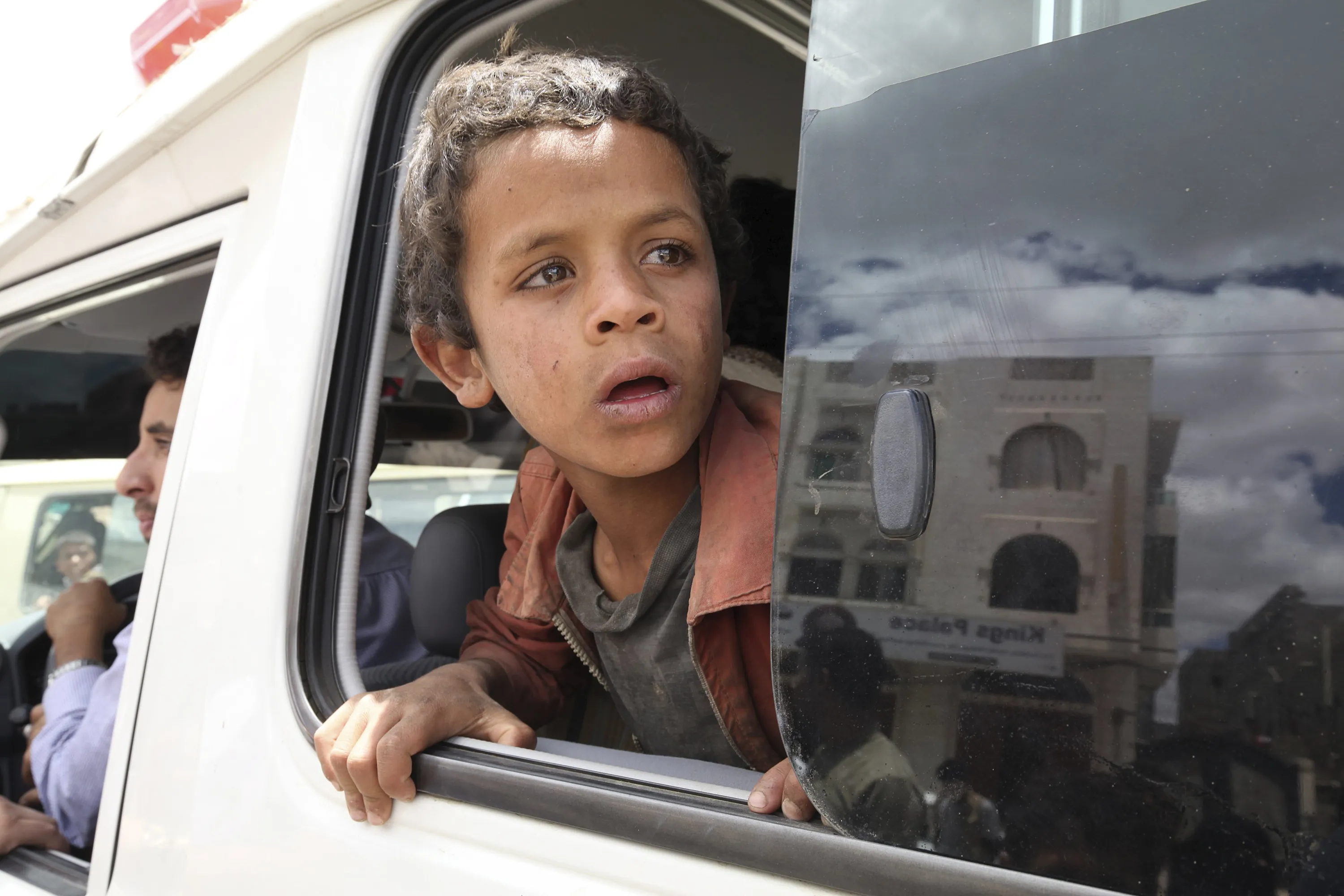 A boy looks out of the window of a Yemen Red Crescent vehicle as he leaves an underground water tunnel with other displaced people, after they were forced to flee their home due to ongoing air-strikes carried out by the Saudi-led coalition in Sanaa May 2, 2015. (Photo by Mohamed al-Sayaghi/Reuters)