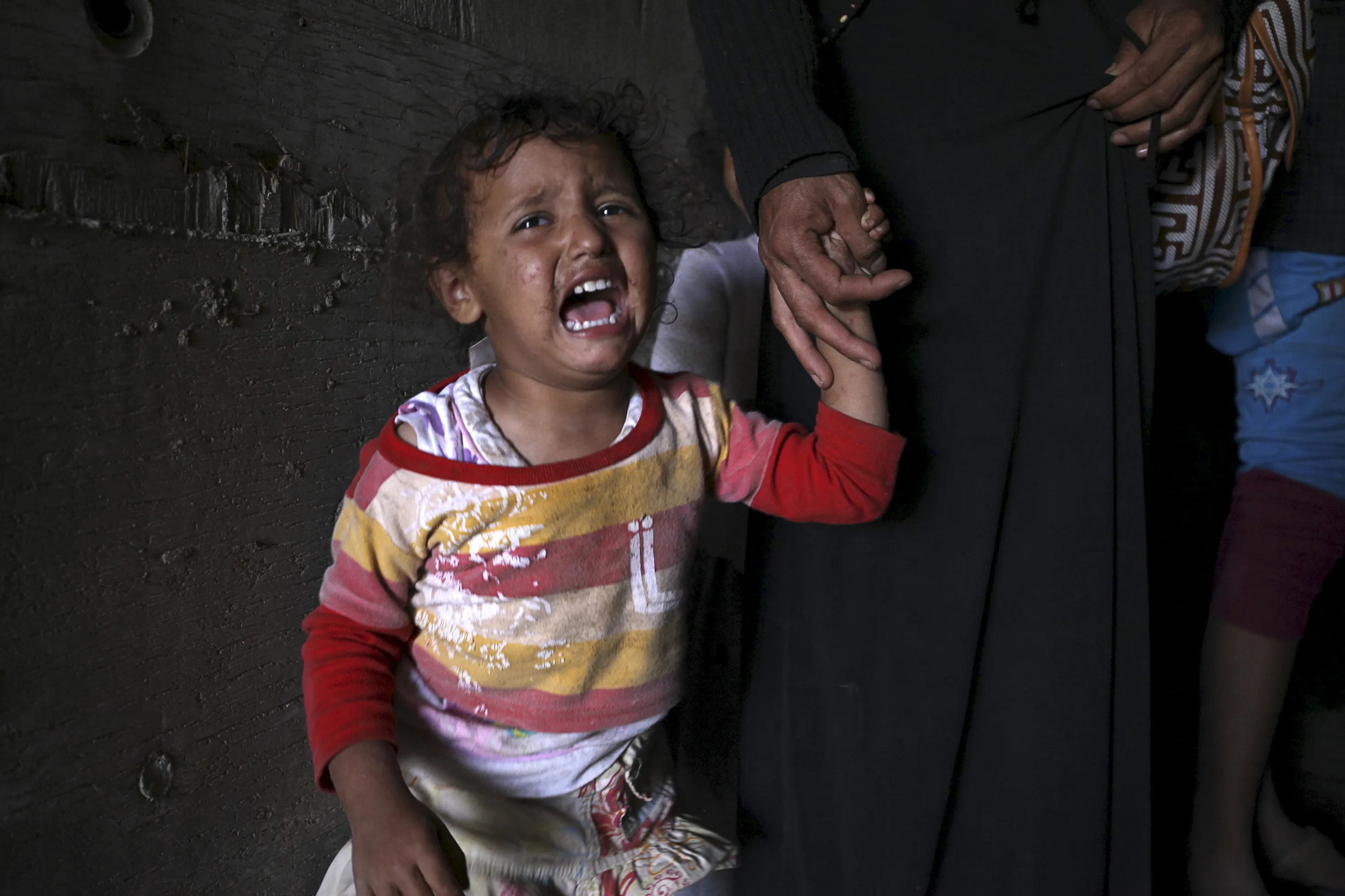 A girl cries next to her mother as they sit inside an underground water tunnel with other displaced Yemeni families, after they were forced to flee their home due to ongoing air-strikes carried out by the Saudi-led coalition in Sanaa May 2, 2015. (Photo by Mohamed al-Sayaghi/Reuters)