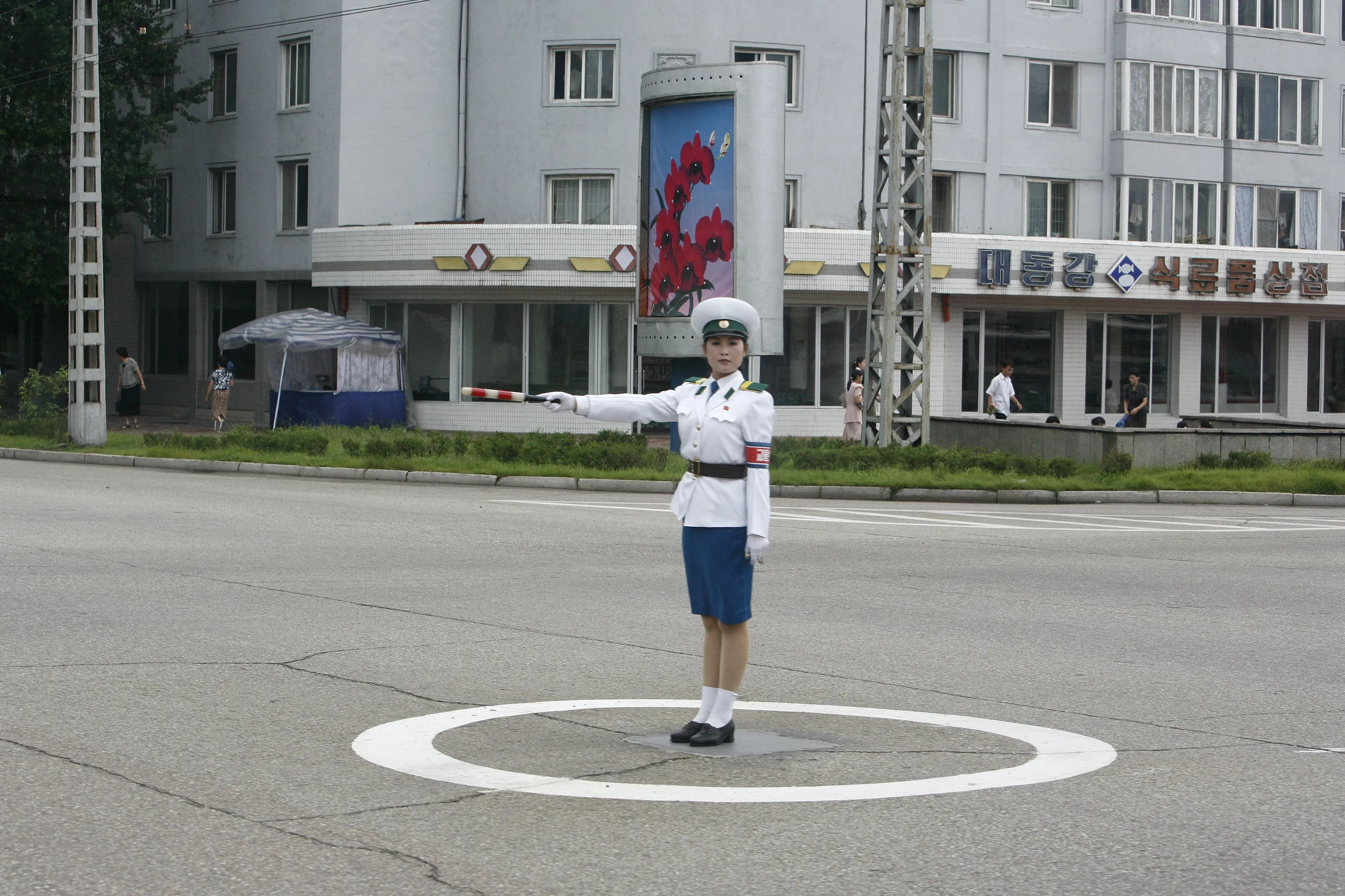 A North Korean traffic policewoman stands on a road in Pyongyang August 27, 2007. (Photo by Reinhard Krause/Reuters)