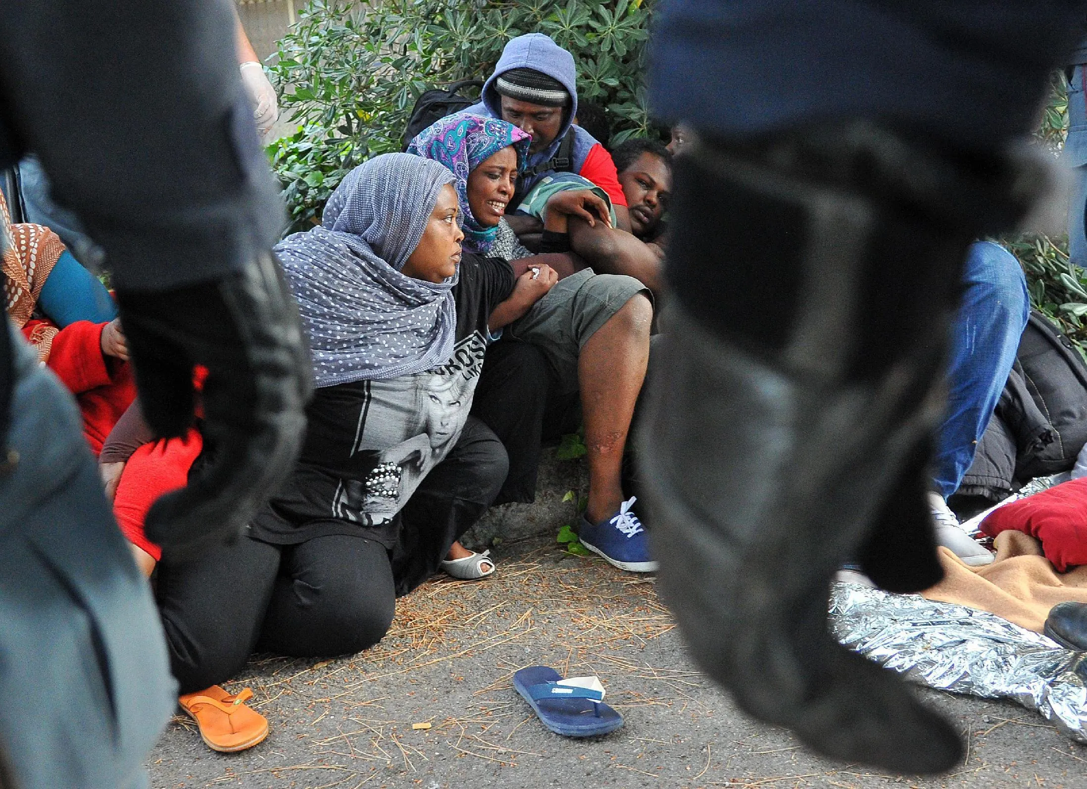 Italian Police remove migrants in Ventimiglia, at the Italian-French border Tuesday, June 16, 2015. Police at Italy's Mediterranean border with France have forcibly removed some of the African migrants who have been camping out for days in hopes of continuing their journeys farther north. The migrants, mostly from Sudan and Eritrea, have been camped out for five days after French border police refused to let them cross. (Luca Zennaro/ANSA via AP)