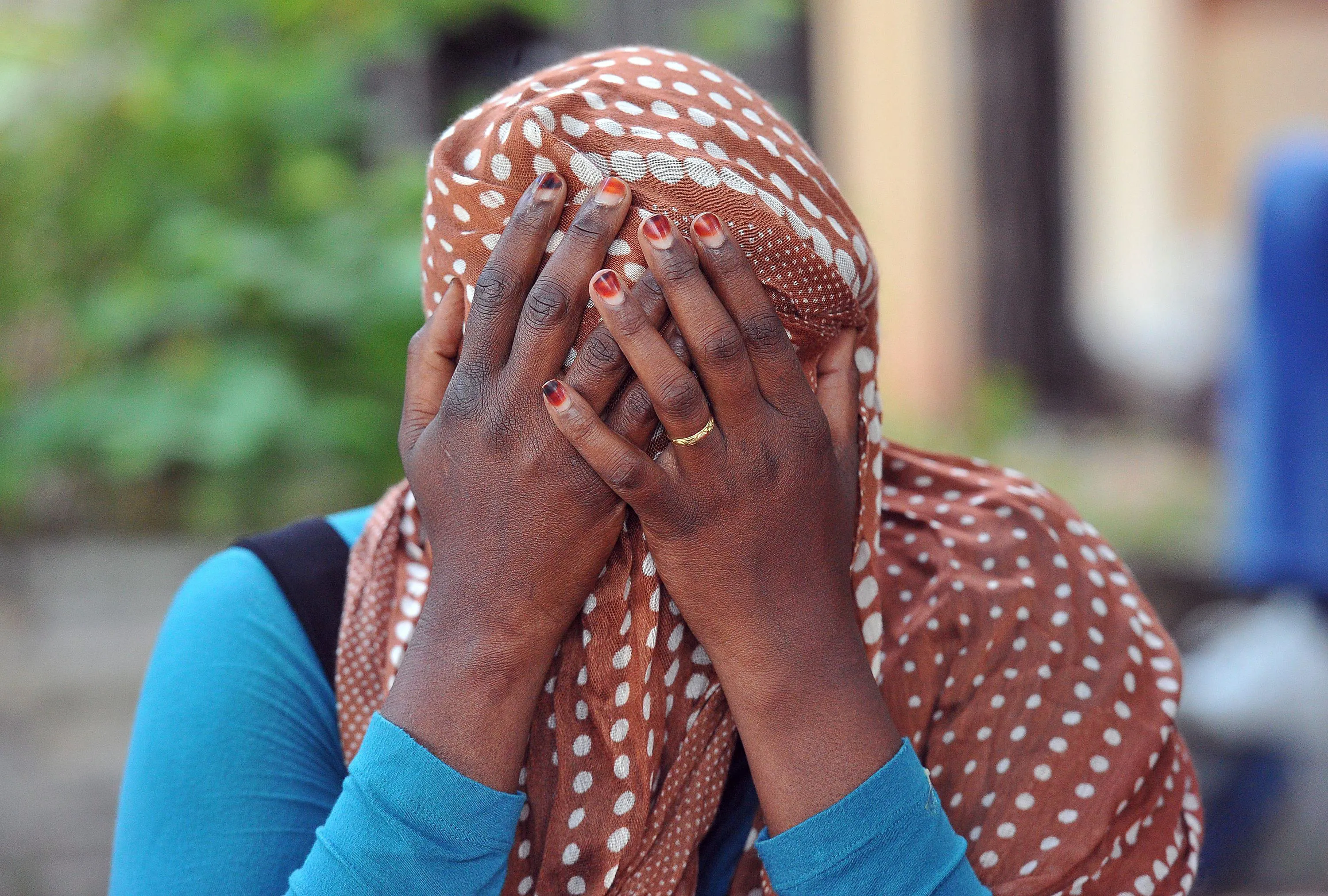 A woman covers her face in Ventimiglia, at the Italian-French border Tuesday, June 16, 2015. Police at Italy's Mediterranean border with France have forcibly removed some of the African migrants who have been camping out for days in hopes of continuing their journeys farther north. The migrants, mostly from Sudan and Eritrea, have been camped out for five days after French border police refused to let them cross. (Luca Zennaro/ANSA via AP)