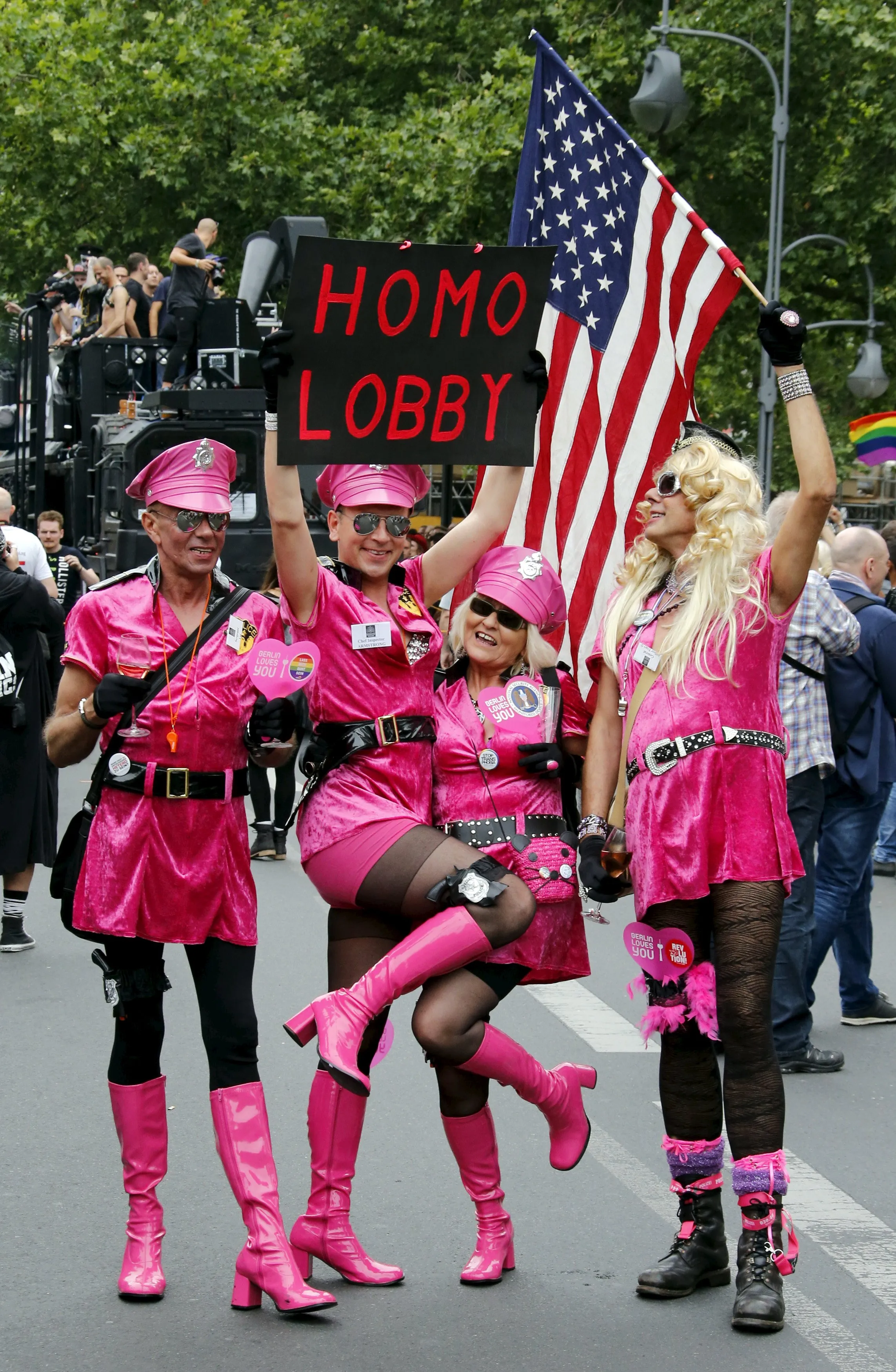 People participate in colourful costumes at the annual Christopher Street Day parade on Kurfuerstendamm in Berlin, Germany, June 27, 2015. (Photo by Fabrizio Bensch/Reuters)