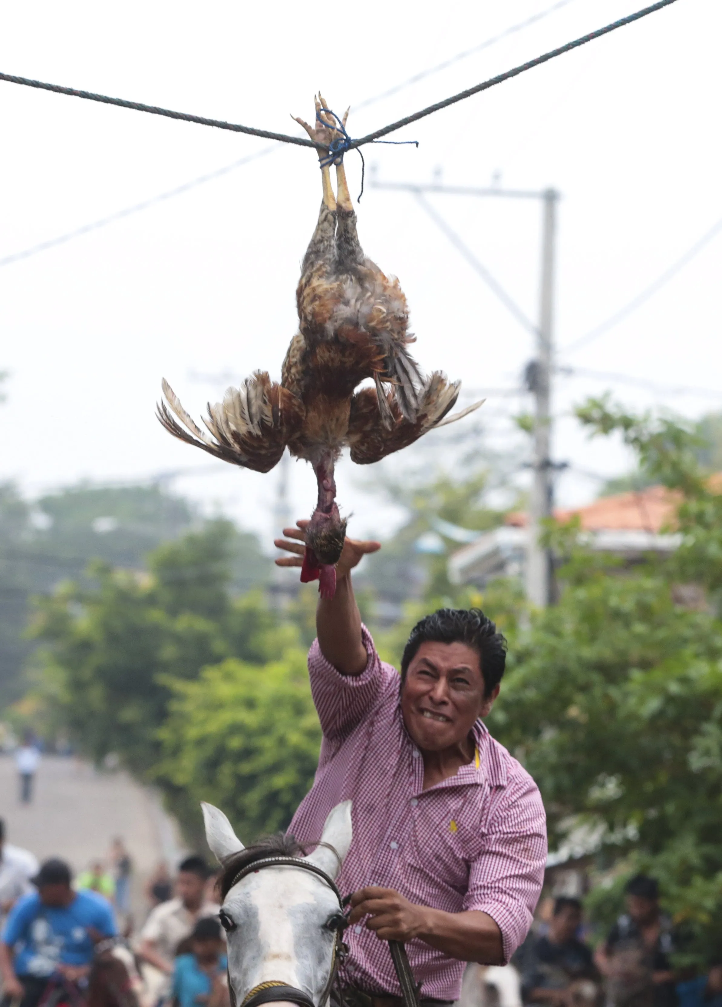 A man attempts to pull off the head of a live rooster while riding a horse during celebrations in honour of San Juan Bautista in San Juan de Oriente town, Nicaragua, June 26, 2015. (Photo by Oswaldo Rivas/Reuters)