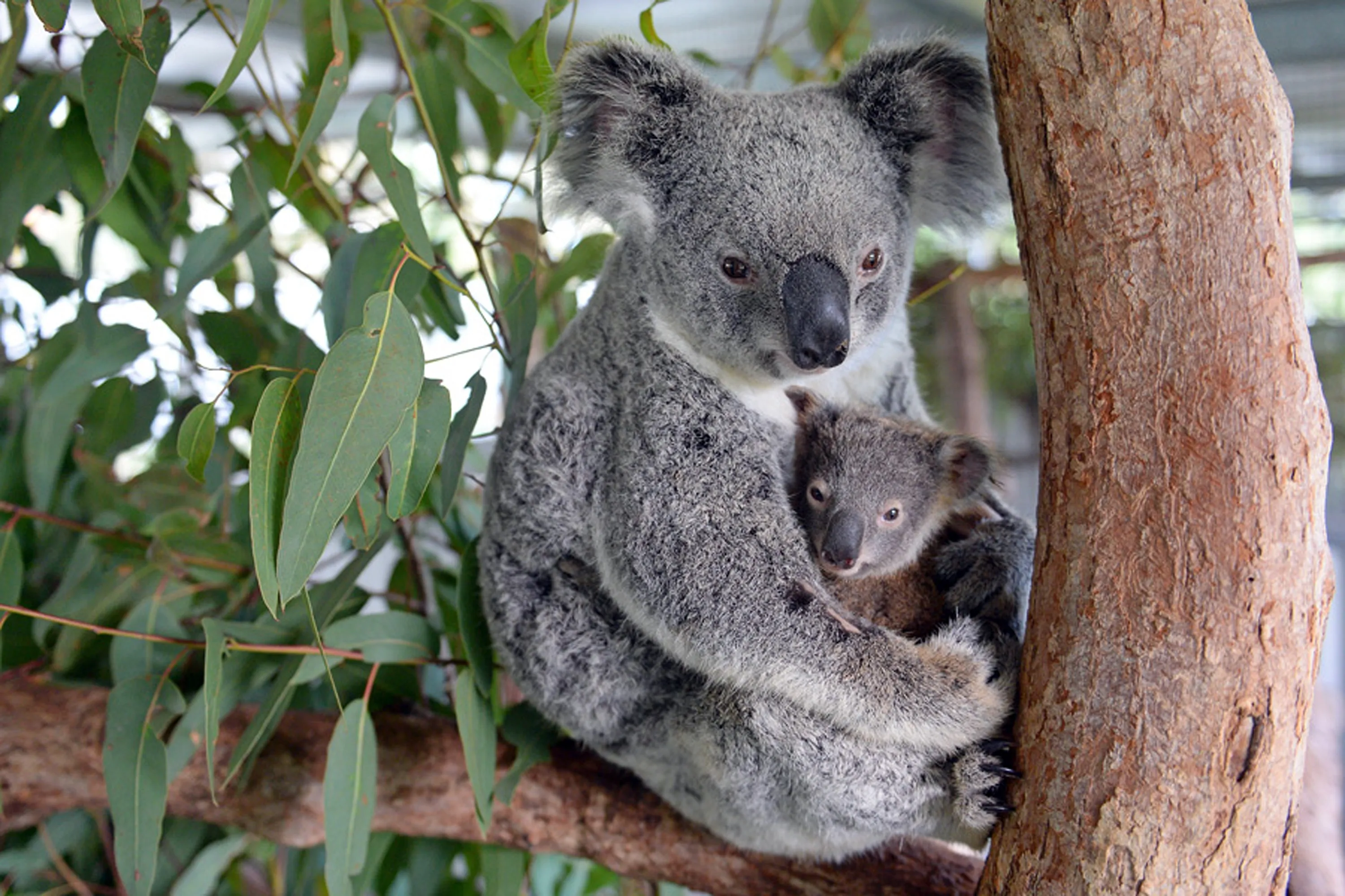 This undated handout picture taken recently by Ben Beaden and released to AFP by the Australia Zoo on June 16, 2015 shows Koala mum named “Lizzy” cuddling her baby “Phantom” at the Australia Zoo Wildlife Hospital at Beerwah in Queensland state. Lizzy is recovering well after her surgery last week while Phantom is putting on weight as well which is a great sign for the health of both mother and baby. Lizzy and Phantom were brought into the Australia Zoo Wildlife Hospital after Lizzy was hit by a car on the Warrego Highway near Coominya, west of Brisbane. (Photo by Ben Beaden/AFP Photo)