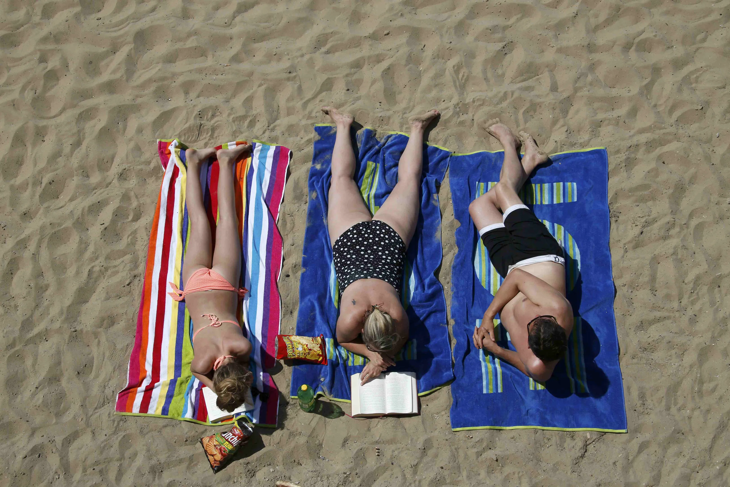 People sunbathe on a hot sunny summer day at Berlin's Wannsee lido, Germany, July 3, 2015. German weather service (DWD) are advising of high temperatures at “record levels” in southern and western Germany this week. (Photo by Fabrizio Bensch/Reuters)