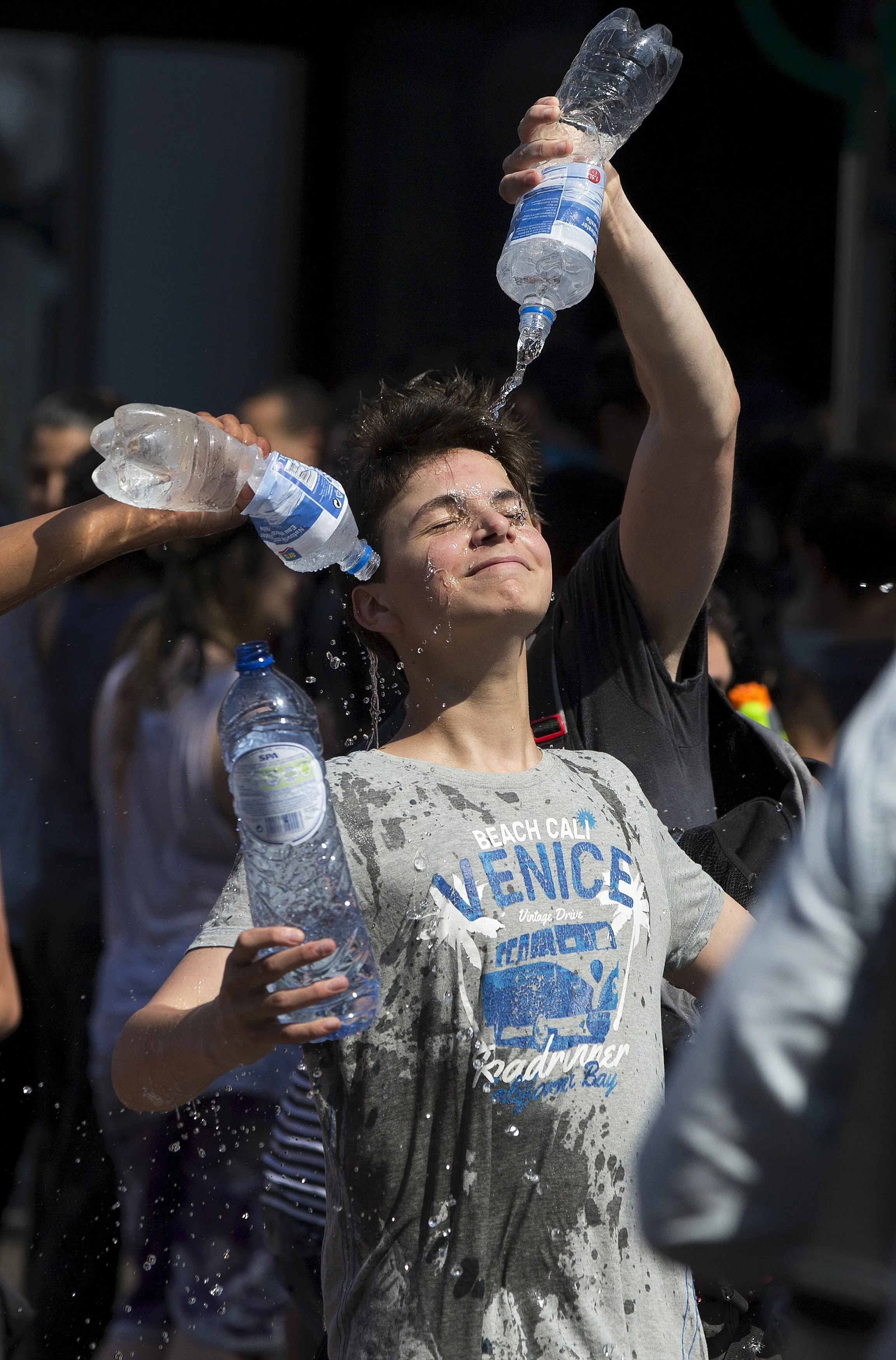 Youths take part in a giant water fight on a hot summer day in central Brussels, Belgium, July 3, 2015. (Photo by Yves Herman/Reuters)