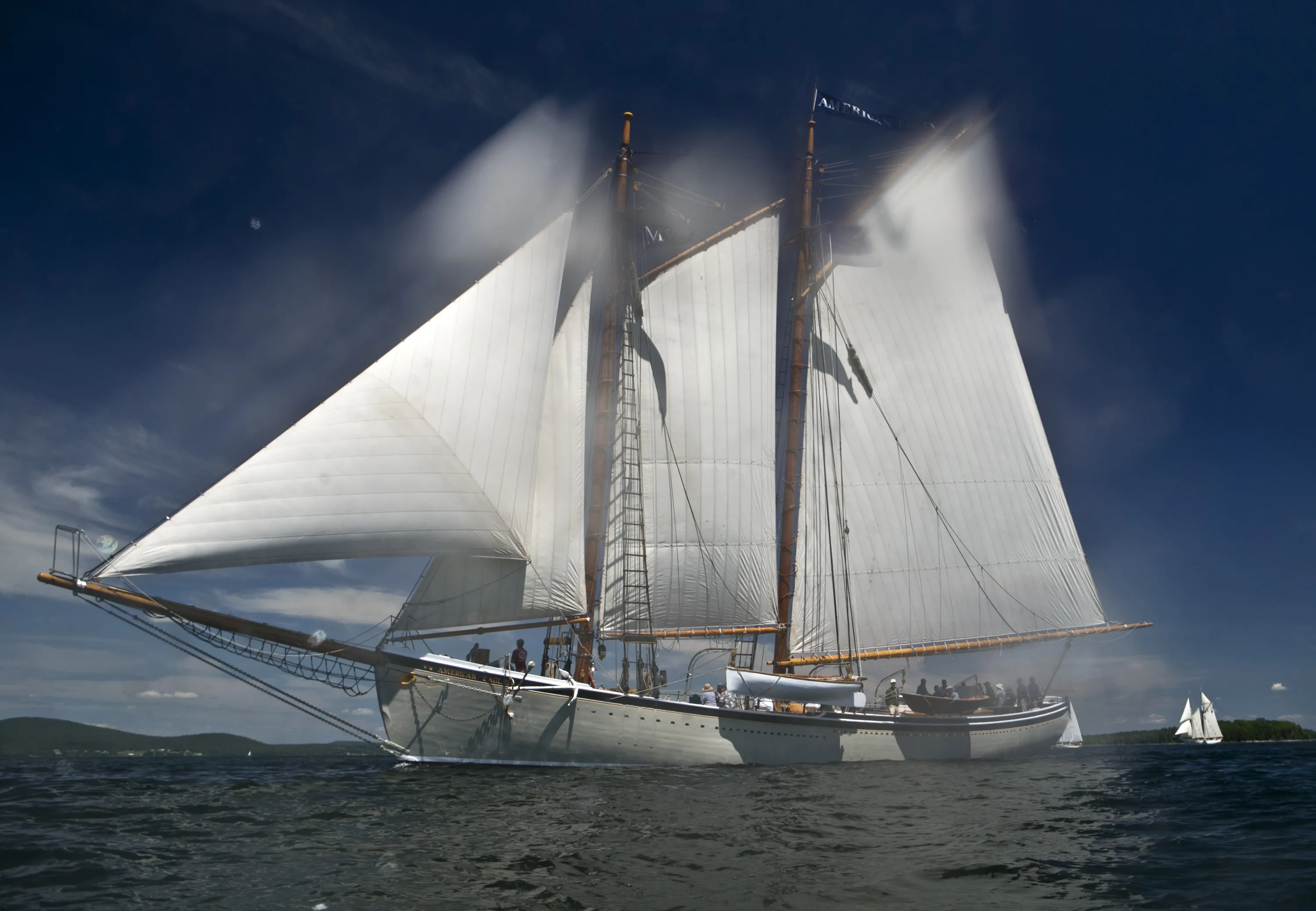 The American Eagle competes in the 39th Annual Great Schooner race, Friday, July 3, 2015, on Penobscot Bay off the coast of Rockland, Maine. The former fishing vessel was launched in 1930. The history of racing coasting schooners started over a century ago with sailors trying to beat their competitors to market, according to the Maine Windjammmer's Association. The first boat back to port always got the best price for their cargo, whether it be fish, granite or Christmas trees. (Photo by Robert F. Bukaty/AP Photo)