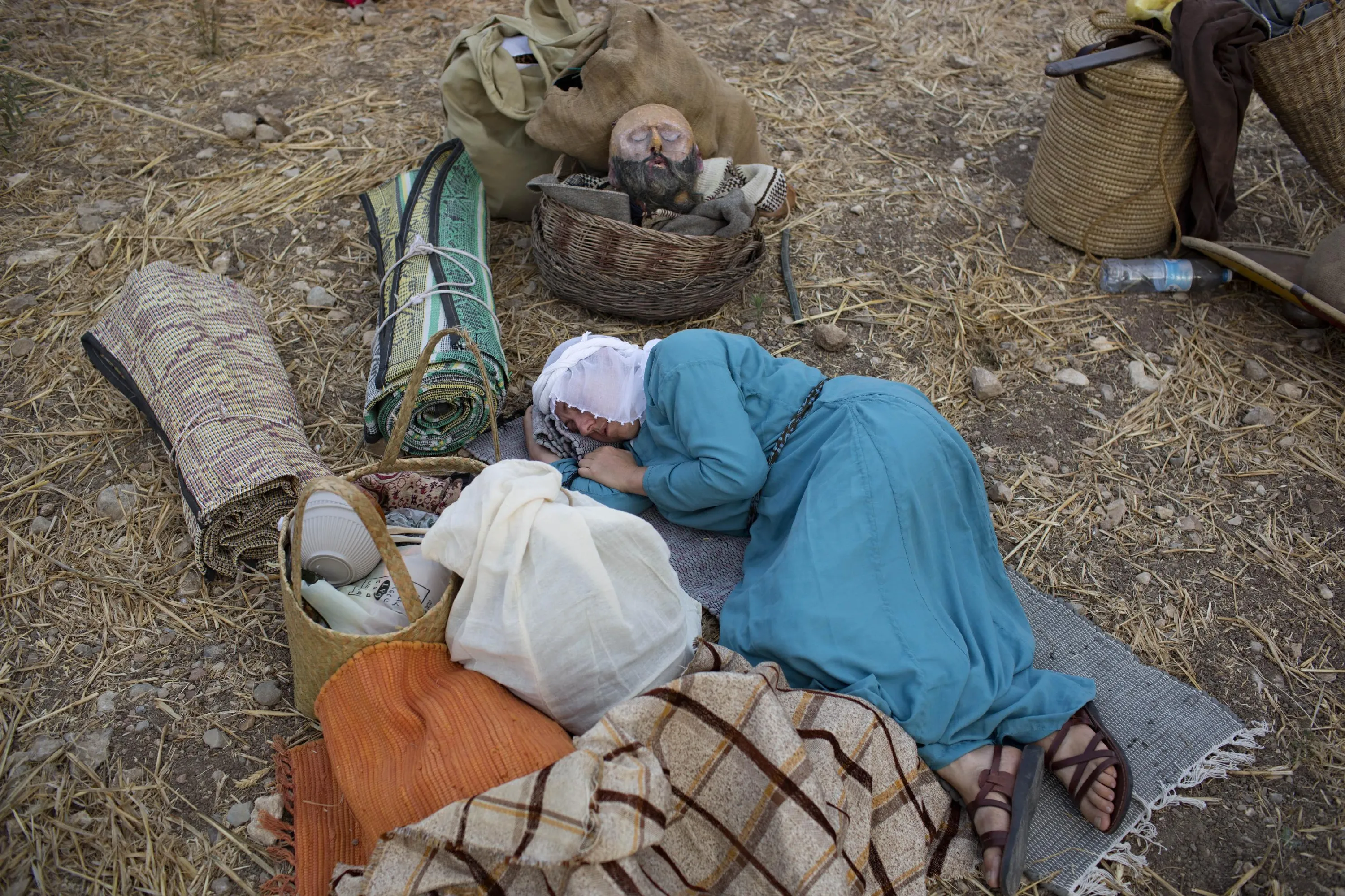 In this Thursday, July 2, 2015 photo, an Israeli member of a knight club rests in the camp before marching 27 kilometers (17 miles) to the reenactment of the Battle of Hattin from the ancient northern city of Zippori to Horns of Hattin, northern Israel. (Photo by Oded Balilty/AP Photo)