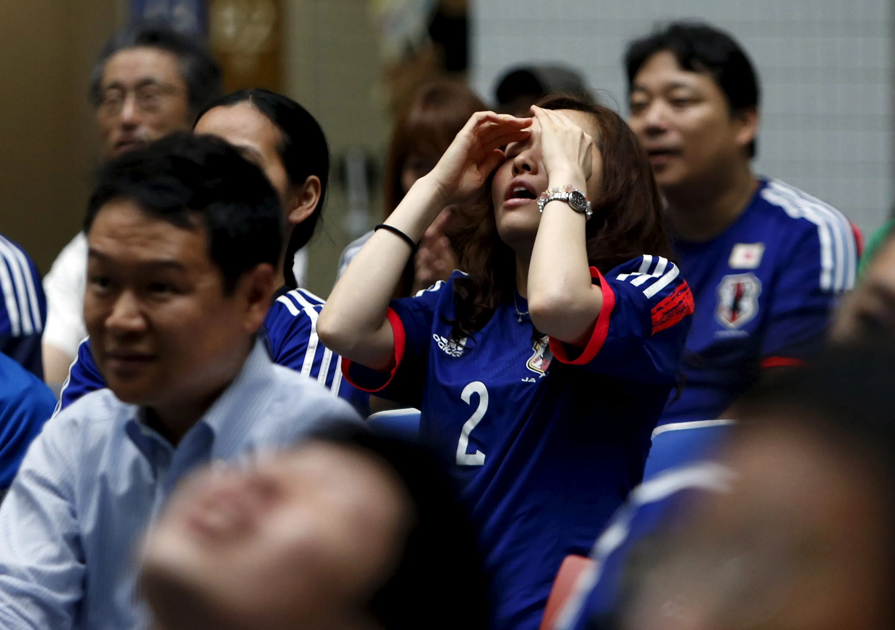 Japan's soccer fans react after England's Fara Williams scored an equalizer during their FIFA Women's World Cup semi-final soccer match, at a public viewing event in Tokyo, Japan, July 2, 2015. (Photo by Yuya Shino/Reuters)