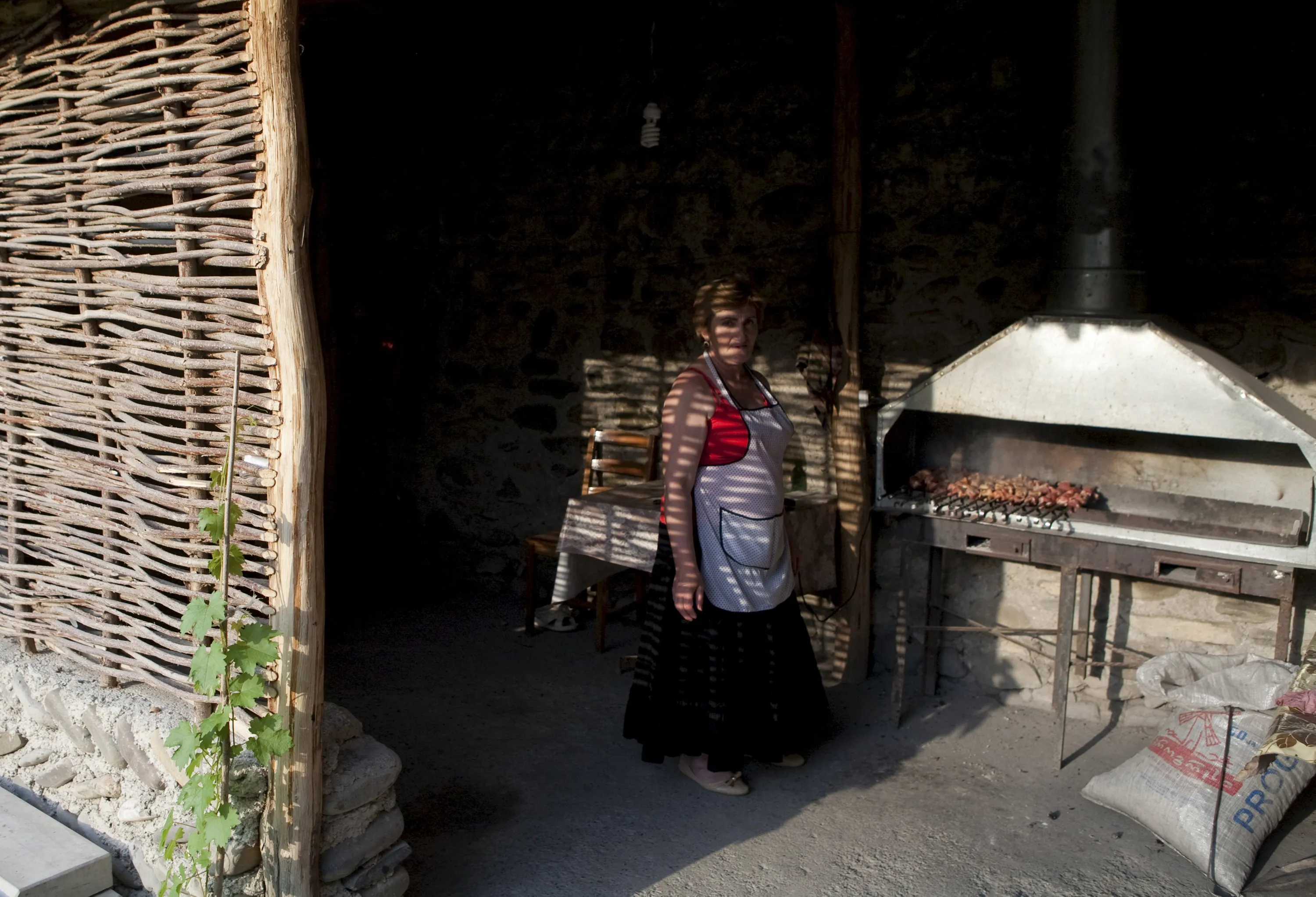 A woman fries meat on a wood-fired grill at a cafe in Leningori (or Akhalgori), in the breakaway region of South Ossetia, Georgia, July 6, 2015. (Photo by Kazbek Basaev/Reuters)