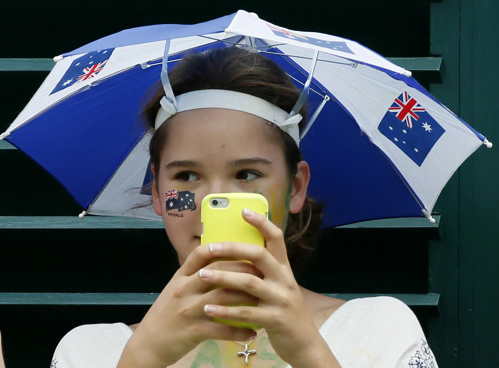 Australian fan with a novelty sun hat on Court 18 at the Wimbledon Tennis Championships in London, July 1, 2015. (Photo by Stefan Wermuth/Reuters)