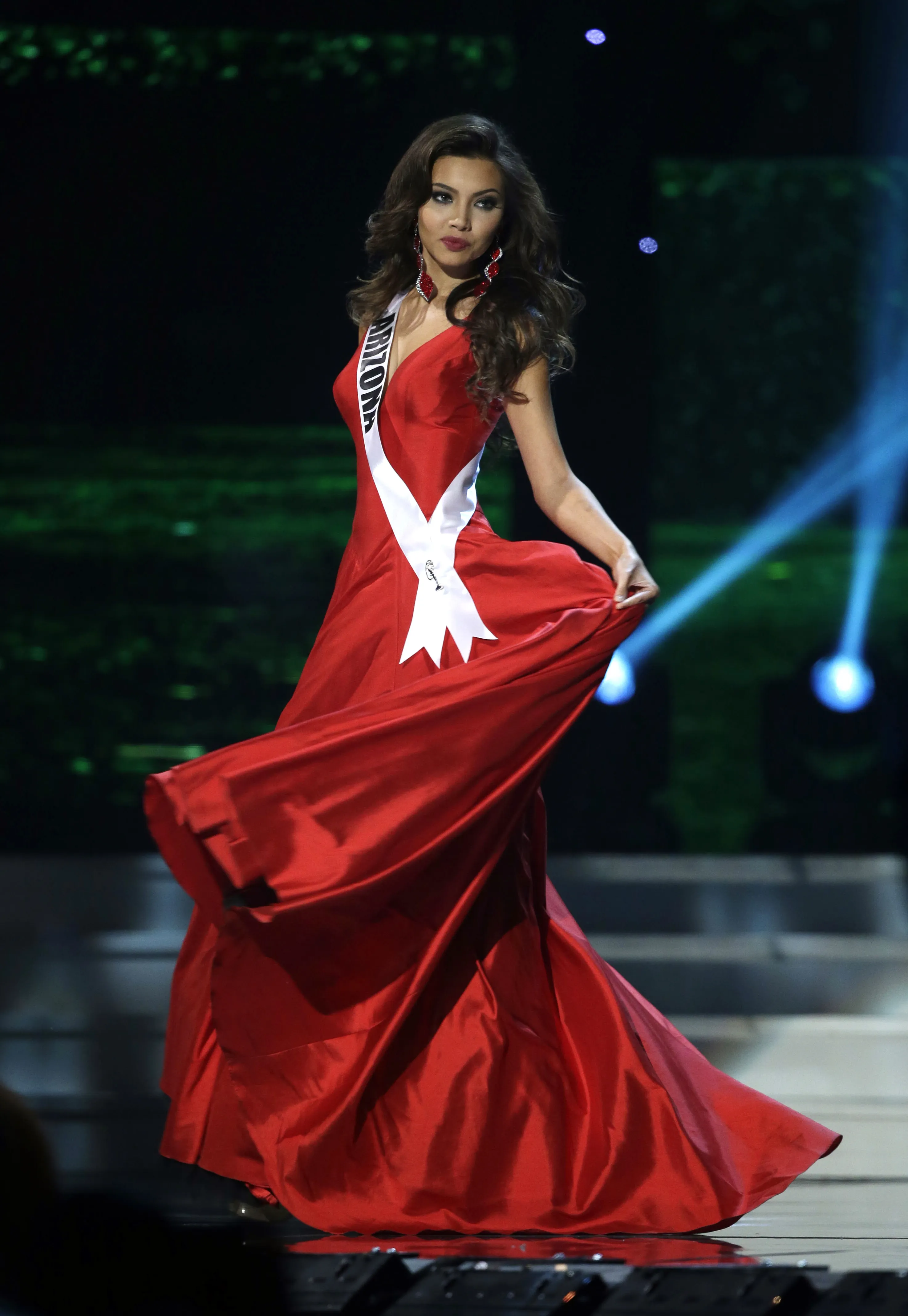 Miss Arizona Maureen Montagne competes in the evening gown competition during the preliminary round of the 2015 Miss USA Pageant in Baton Rouge, La., Wednesday, July 8, 2015. (Photo by Gerald Herbert/AP Photo)