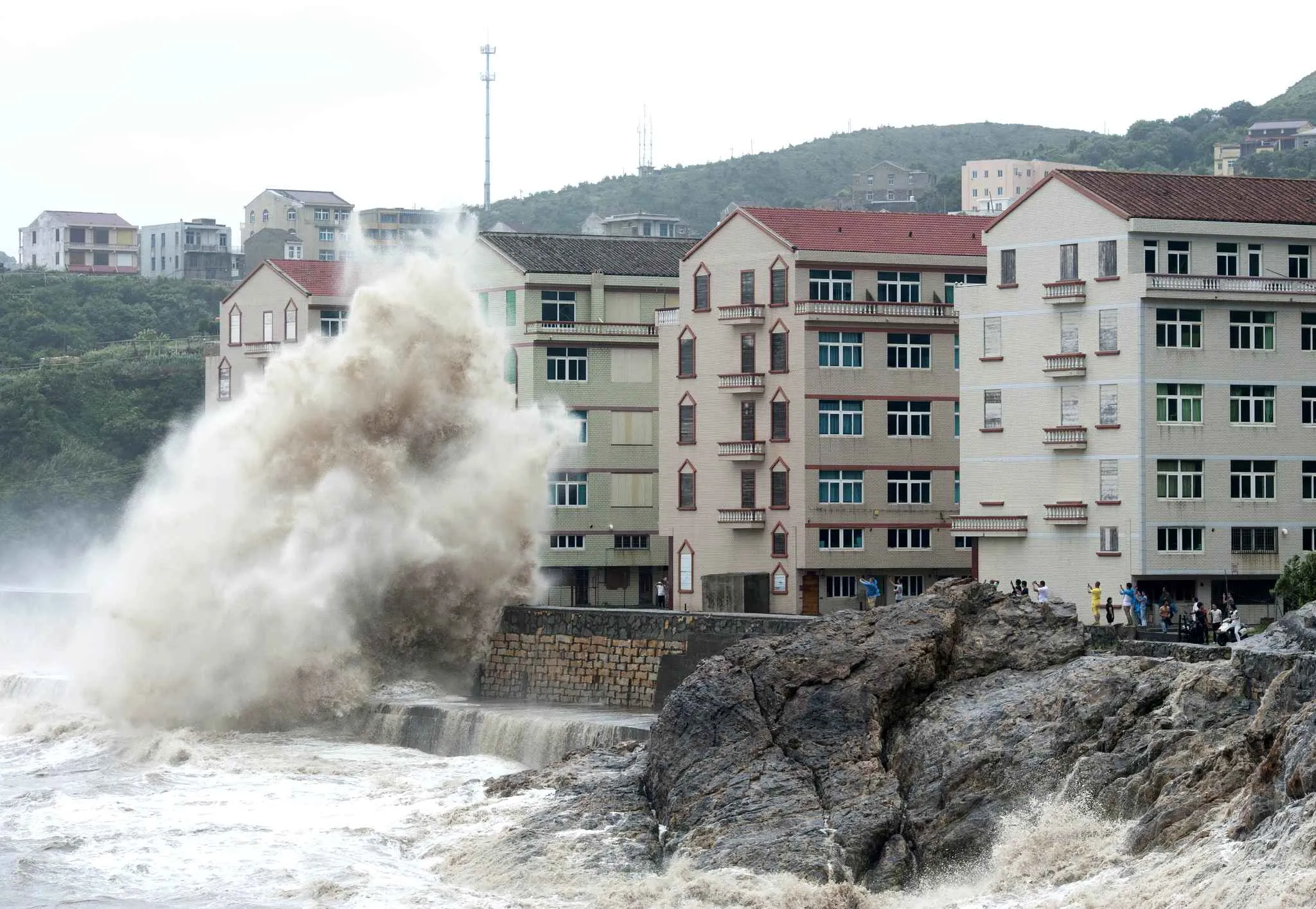 People gather to see huge waves as typhoon Chan-hom comes near Wenling, east China's Zhejiang province on July 10, 2015. (Photo by AFP Photo)