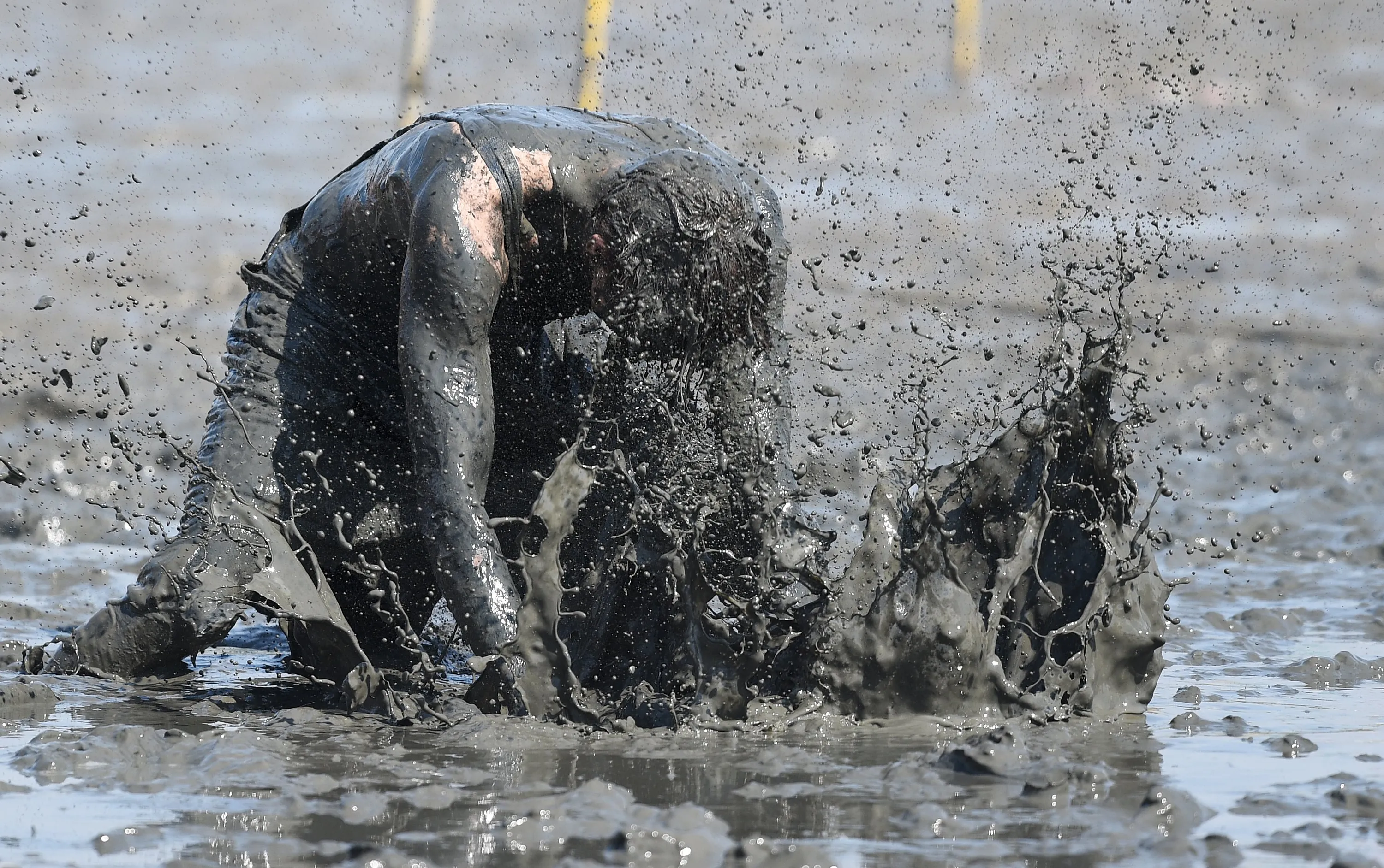 A player reacts during a handball match at the so called “Wattoluempiade” (Mud Olympics) in Brunsbuettel at the North Sea, July 11, 2015. (Photo by Fabian Bimmer/Reuters)