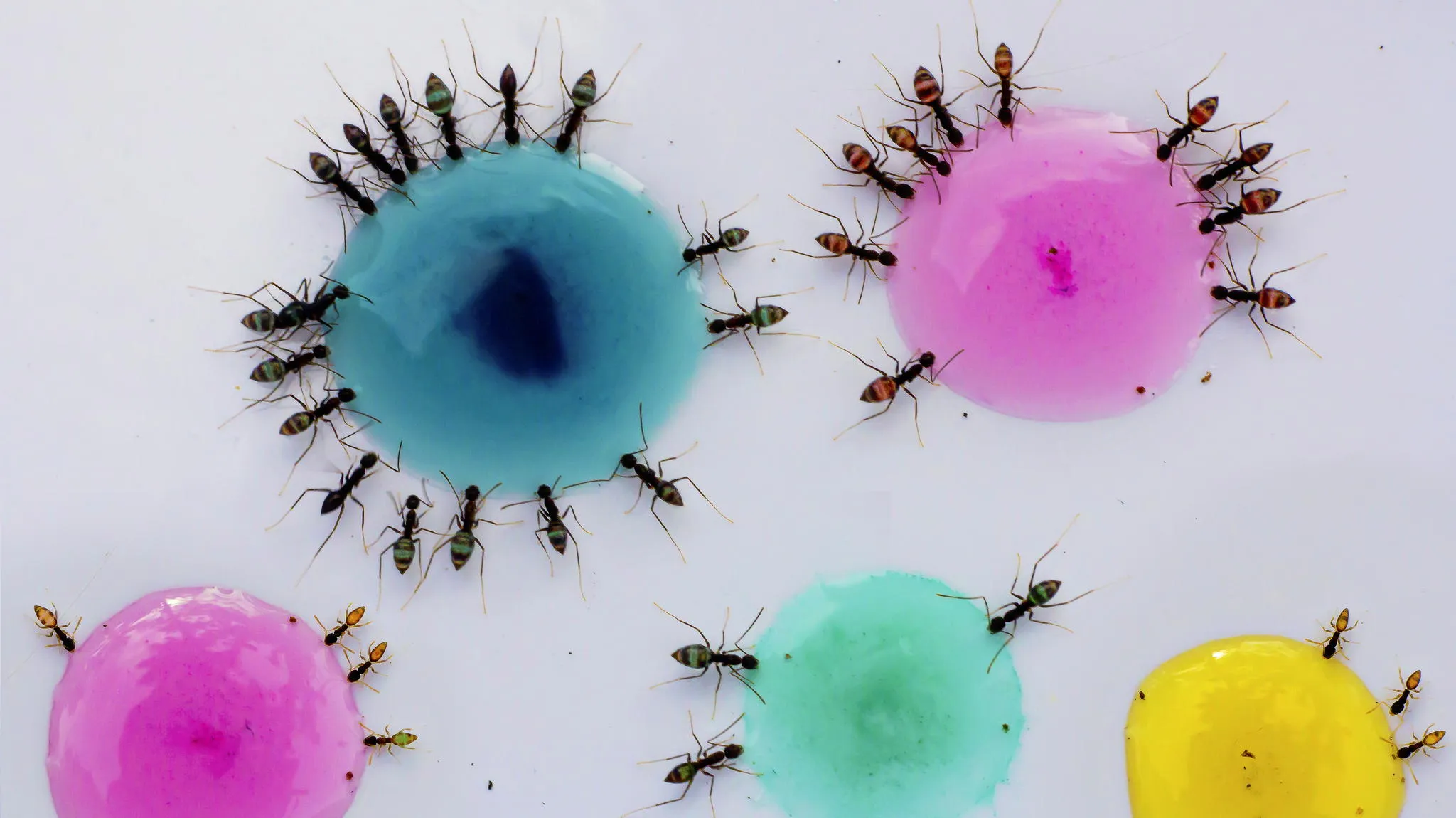 Scientist Mohamed Babu from Mysore, India captured beautiful photos of these translucent ants eating a specially colored liquid sugar. Some of the ants would even move between the food resulting in new color combinations in their stomachs.