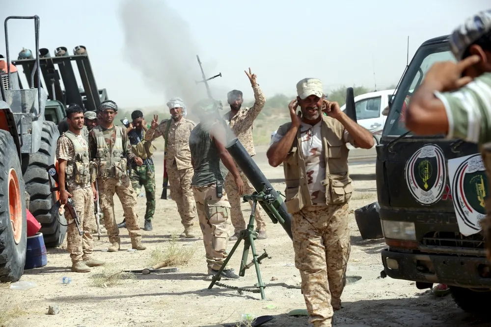 Members of Iraq's Shi'ite paramilitaries launch a mortar towards Islamic State militants on the outskirts of the city of Falluja, in the province of Anbar, Iraq July 12, 2015. (Photo by Reuters/Stringer)