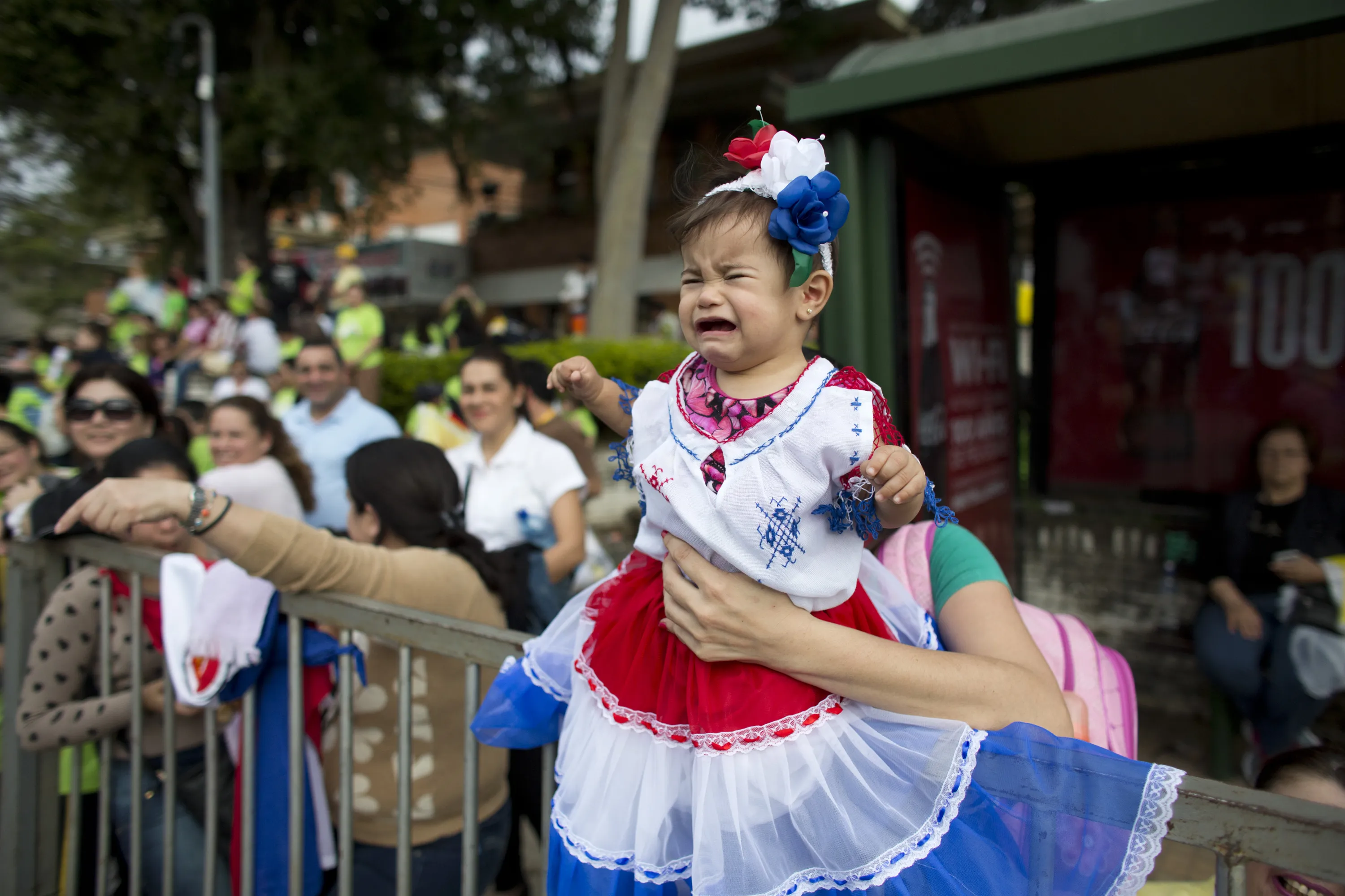 Daniela Romero, 7-months-old, cries in the arms of her mother as they wait for Pope Francis to pass on his popemobile in Asuncion, Paraguay, Saturday, July 11, 2015. Pope Francis lauded the strength and religious fervor of Paraguayan women on Saturday while visiting the country's most important pilgrimage site, where thousands of his fellow Argentines joined with hundreds of thousands of local faithful to welcome Latin America's first pope. (Photo by Victor R. Caivano/AP Photo)