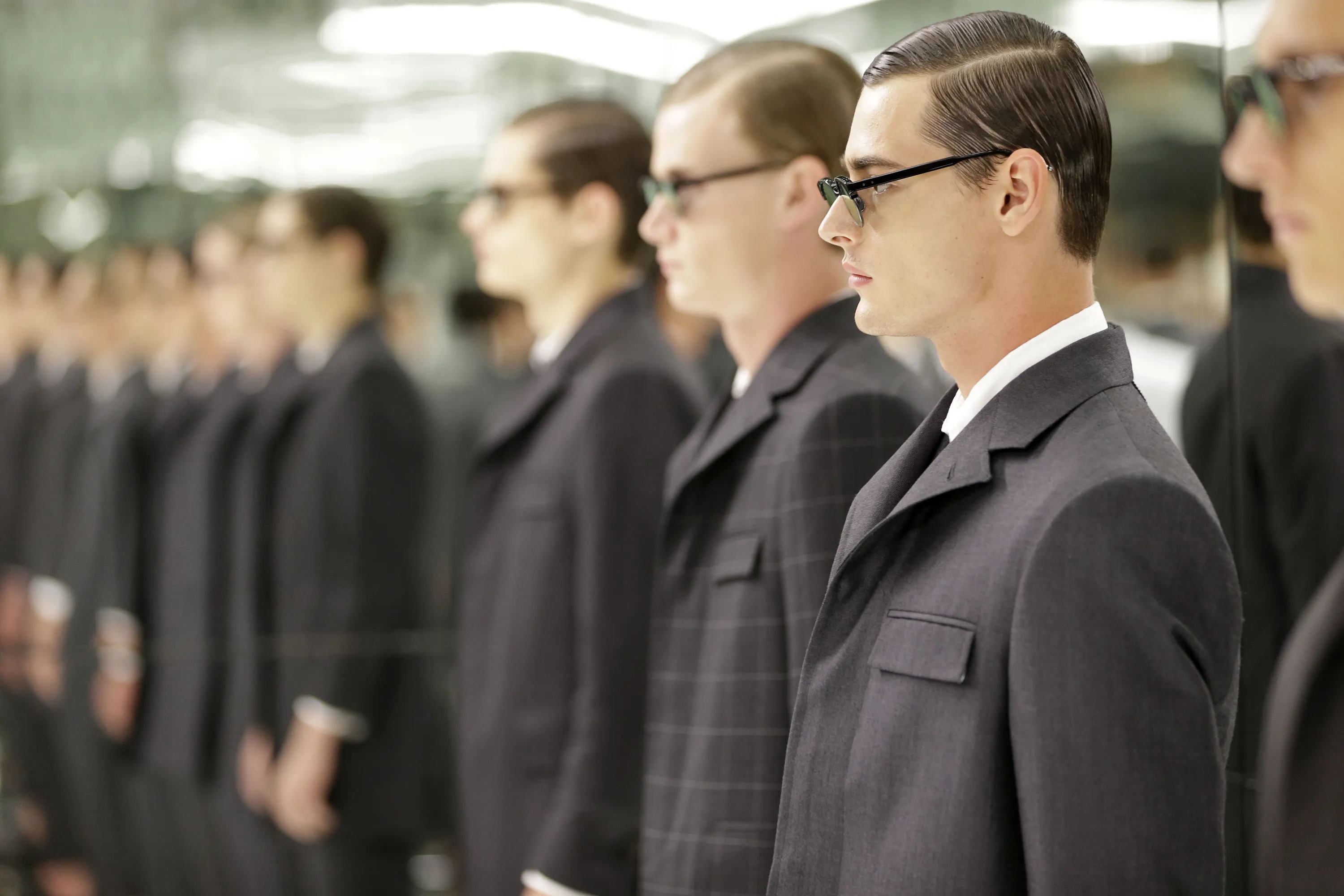 Models stand in a mirrored room during a presentation by Thom Browne at Men's Fashion Week in New York, Tuesday, July 14, 2015. The inaugural New York Men's Fashion Week runs through Thursday. (Photo by Seth Wenig/AP Photo)