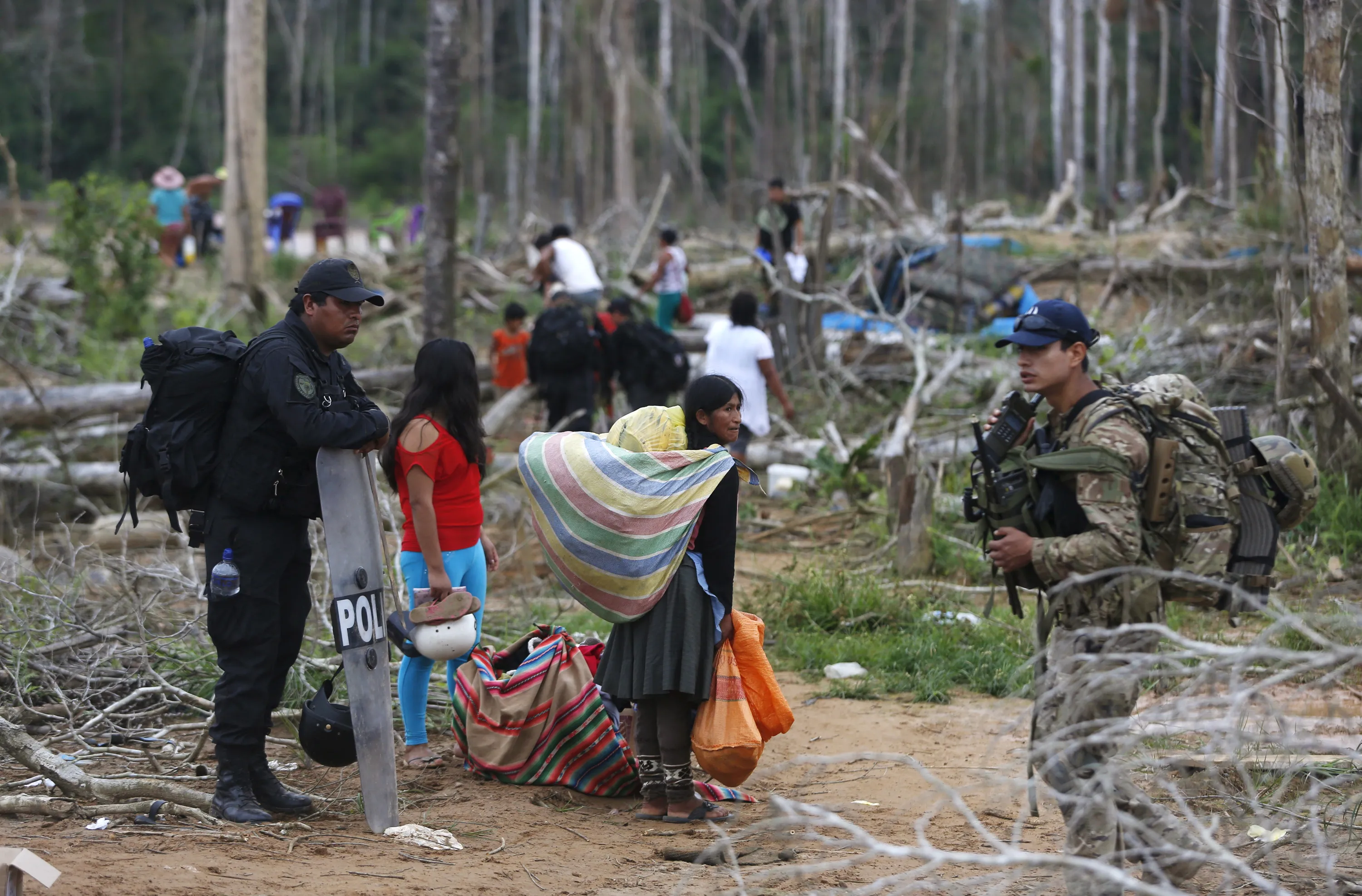 Miners and their families leave a camp after Peruvian police operation to destroy illegal gold mining camps in a zone known as Mega 14, in the southern Amazon region of Madre de Dios July 14, 2015. (Photo by Janine Costa/Reuters)