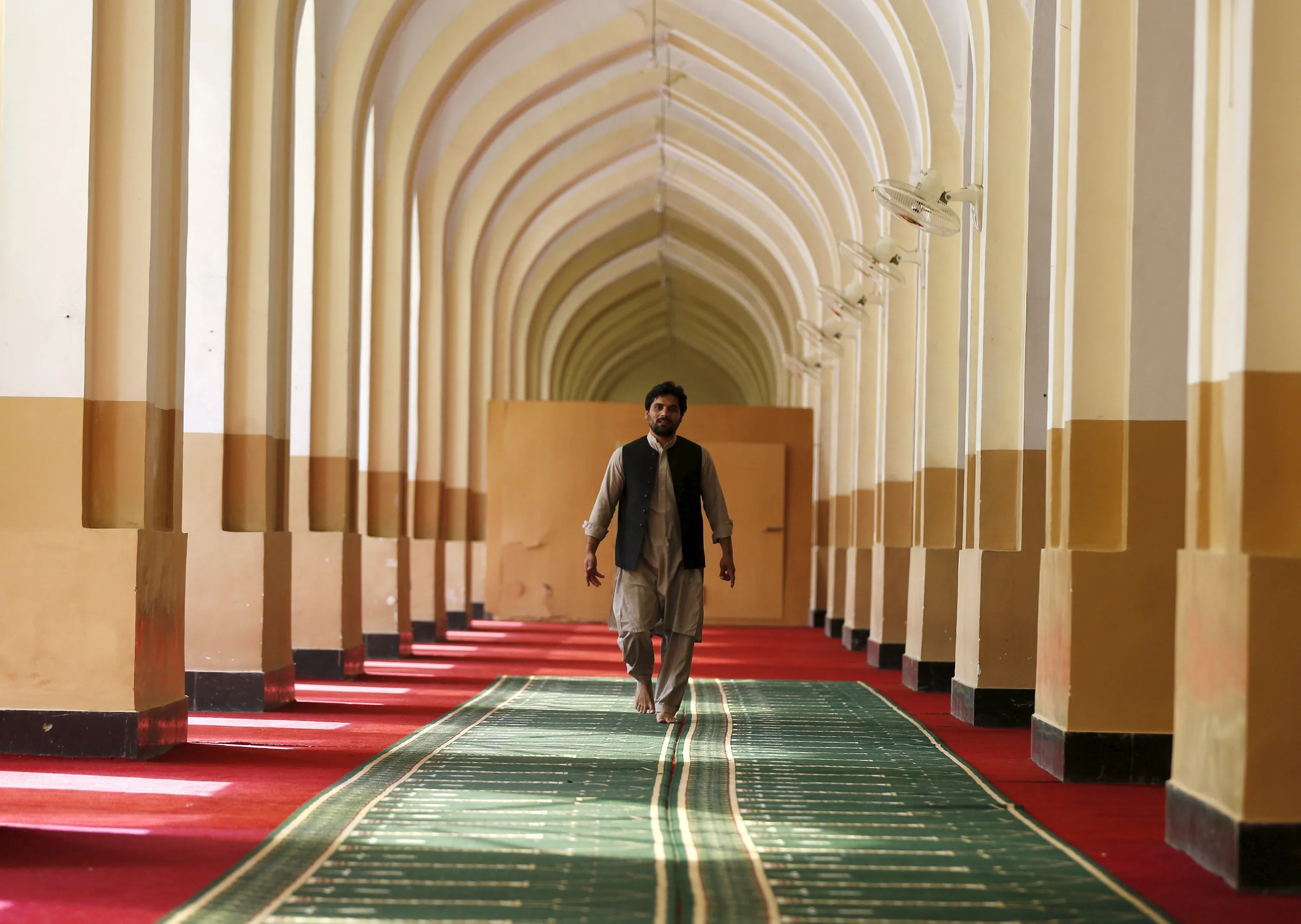 A man arrives to attend morning prayers to celebrate the first day of the Muslim holiday of Eid-al-Fitr, marking the end of the holy month of Ramadan, at Eid Gah mosque in Kabul, Afghanistan, July 17, 2015. (Photo by Omar Sobhani/Reuters)
