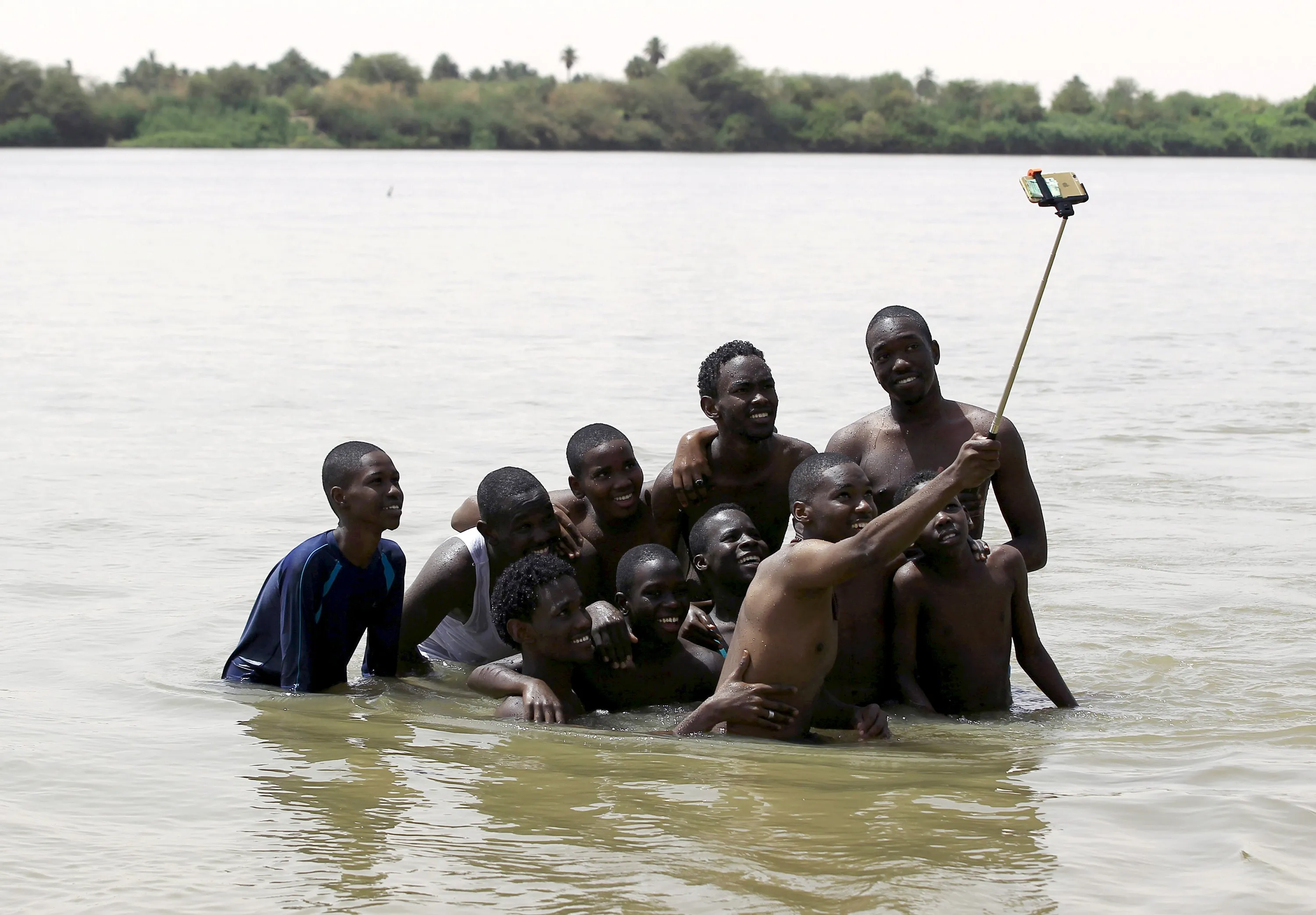 A group of young men use a selfie stick to take a picture of themselves in shallow waters known as the first cataract of the River Nile outside Khartoum, Sudan, in this May 22, 2015 file photo. (Photo by Mohamed Nureldin Abdallah/Reuters)