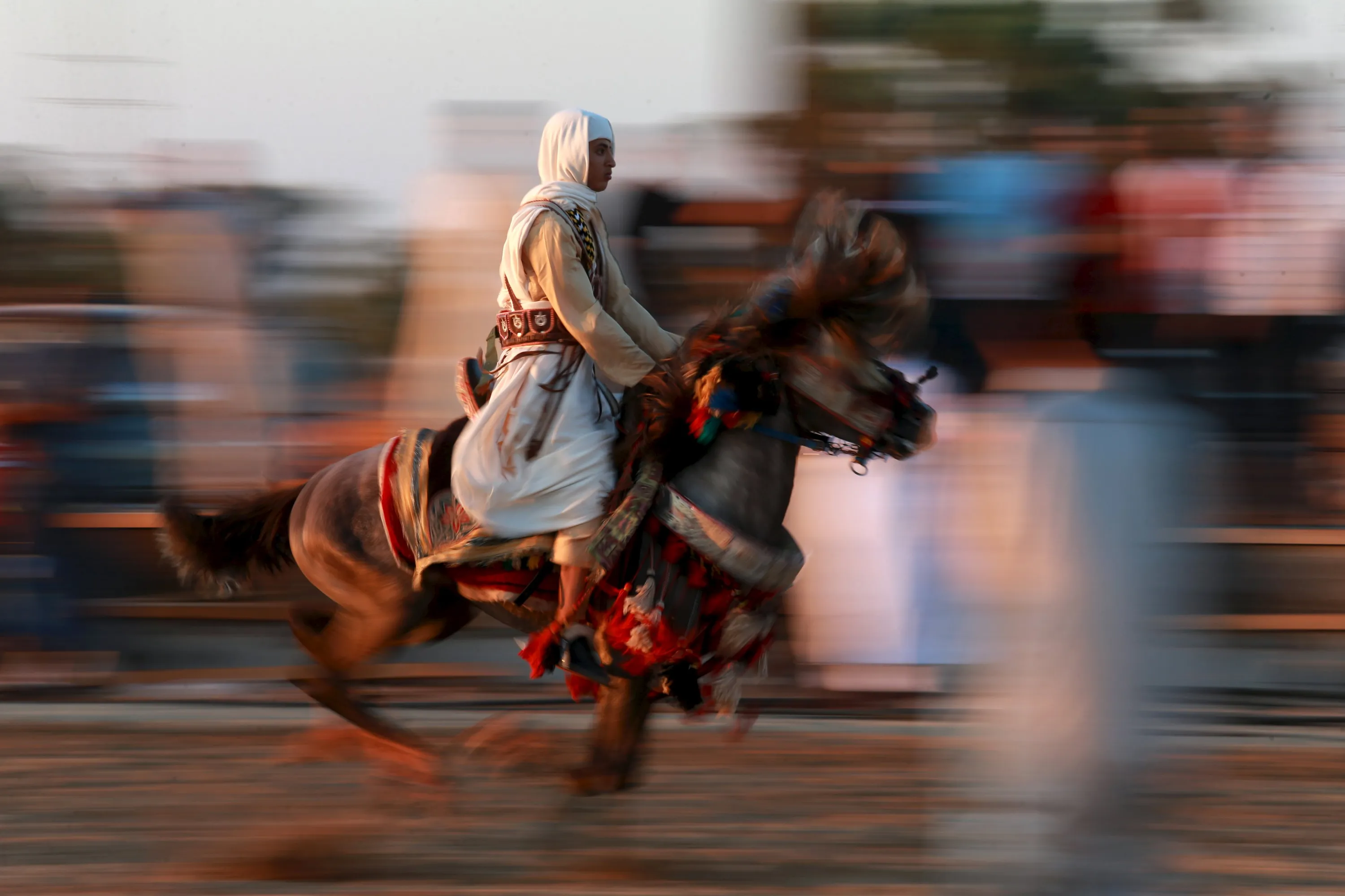 A horse rider, dressed in traditional costume, marks Eid al-Fitr in Benghazi, Libya, July 18, 2015. (Photo by Esam Omran Al-Fetori/Reuters)