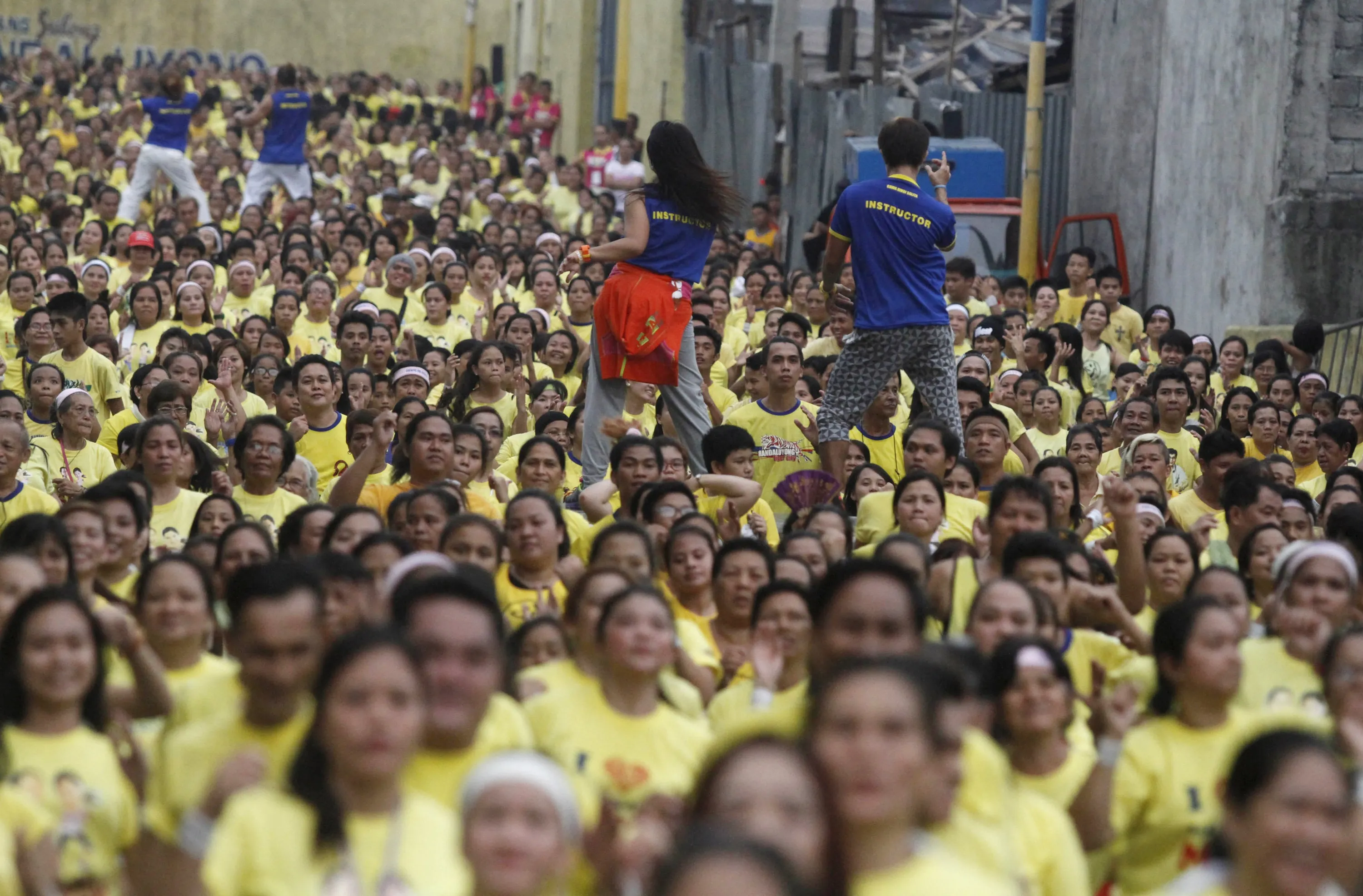 Thousands of health enthusiasts dance to high tempo music as they participate in a Guinness World Records attempt for the largest Zumba class held along the main streets of Mandaluyong city, metro Manila, July 19, 2015. (Photo by /Lorgina MinguitoReuters)